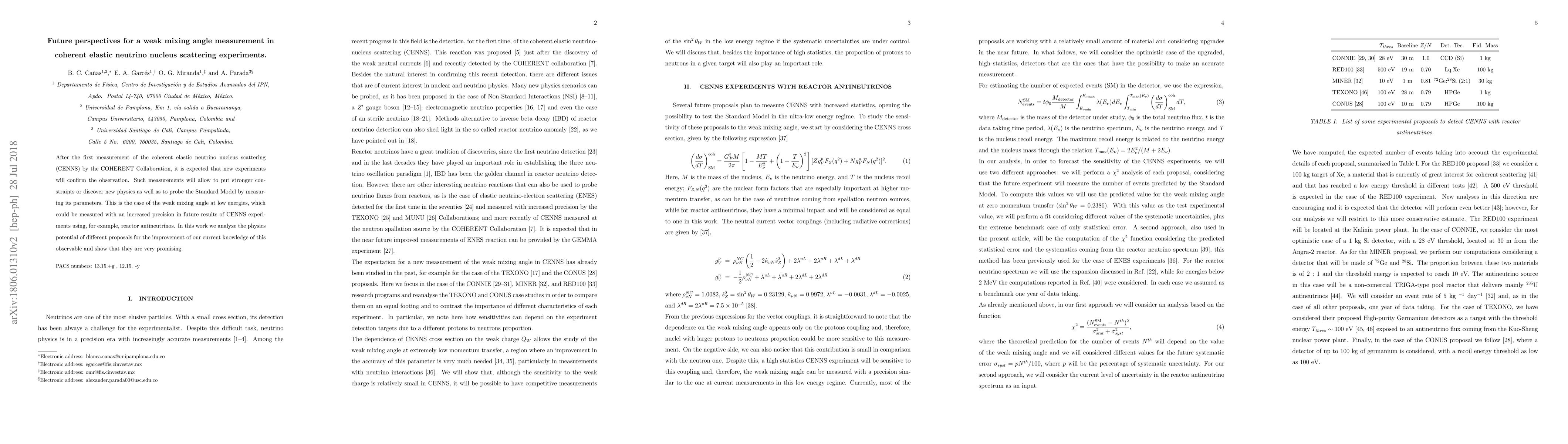 This paper discusses the potential of future coherent elastic neutrino nucleus scattering (CENNS) experiments to measure the weak mixing angle with greater precision, using reactor antineutrinos. It analyzes various experimental proposals and concludes that they hold significant promise for improving our understanding of this fundamental parameter.