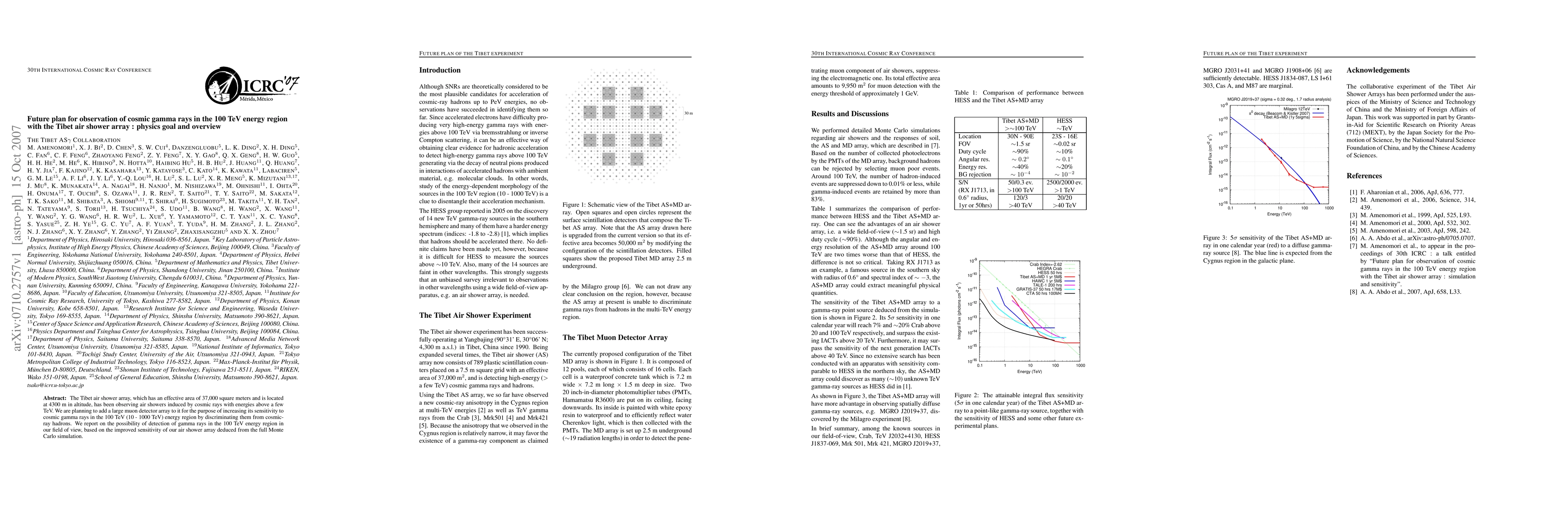 The Tibet air shower array aims to enhance its sensitivity to cosmic gamma rays in the 100 TeV energy range by adding a large muon detector array, thereby distinguishing them from cosmic-ray hadrons. This upgrade is expected to improve detection capabilities based on Monte Carlo simulations.