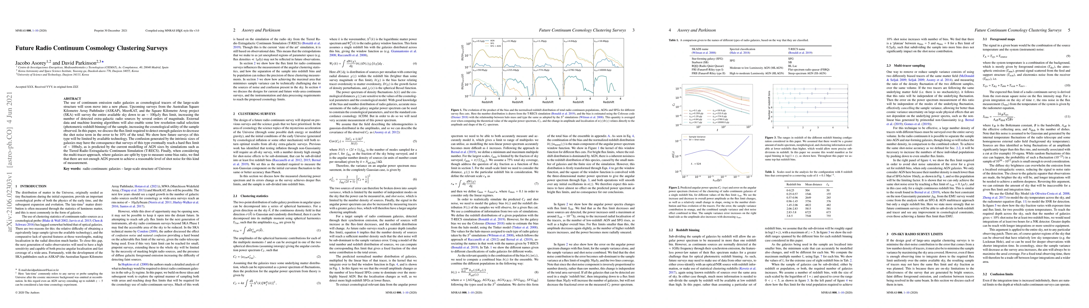 The use of continuum emission radio galaxies as cosmological tracers of the large-scale structure will soon move into a new phase. Upcoming surveys from the Australian Square Kilometre Array Pathfinder (ASKAP), MeerKAT, and the Square Kilometre Array project (SKA) will survey the entire available sky down to an ~100uJy flux limit, increasing the number of detected extra-galactic radio sources by several orders of magnitude. External data and machine learning algorithms will also enable some low resolution radial selection (photometric redshift binning) of the sample, increasing the cosmological utility of the sample observed. In this paper, we discuss the flux limit required to detect enough galaxies to decrease the shot noise term in the error to be 10% of the total. We show how future surveys of this type will be limited by available technology. The confusion generated by the intrinsic sizes of galaxies may have the consequence that surveys of this type eventually reach a hard flux limit of ~100nJy, as is predicted by the current modelling of AGN sizes by simulations such as the Tiered Radio Extragalactic Continuum Simulation (T-RECS). Finally, when considering the multi-tracer approach, where galaxies are split by type to measure some bias ratio, we find that there are not enough AGN present to achieve a reasonable level of shot noise for this kind of measurement.