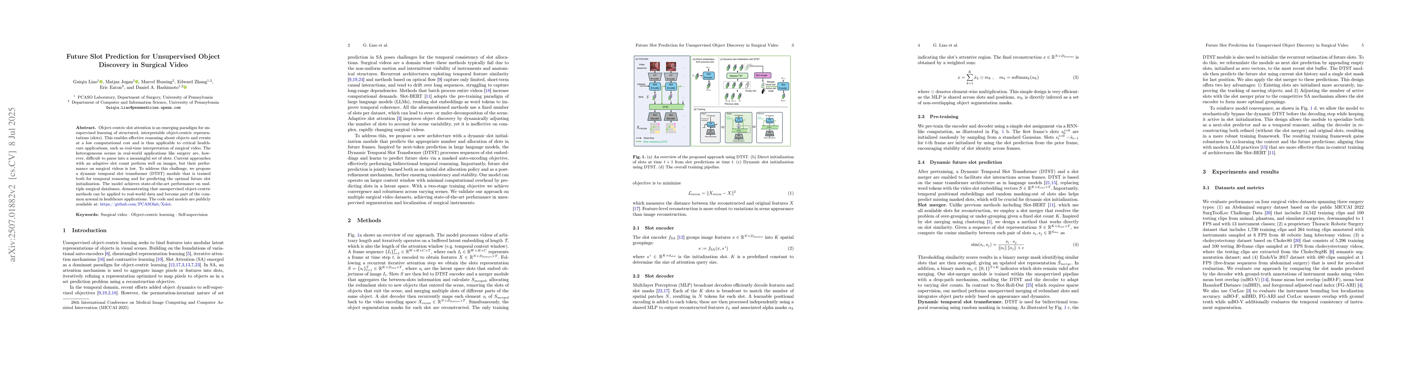 Object-centric slot attention is an emerging paradigm for unsupervised learning of structured, interpretable object-centric representations (slots). This enables effective reasoning about objects and events at a low computational cost and is thus applicable to critical healthcare applications, such as real-time interpretation of surgical video. The heterogeneous scenes in real-world applications like surgery are, however, difficult to parse into a meaningful set of slots. Current approaches with an adaptive slot count perform well on images, but their performance on surgical videos is low. To address this challenge, we propose a dynamic temporal slot transformer (DTST) module that is trained both for temporal reasoning and for predicting the optimal future slot initialization. The model achieves state-of-the-art performance on multiple surgical databases, demonstrating that unsupervised object-centric methods can be applied to real-world data and become part of the common arsenal in healthcare applications.