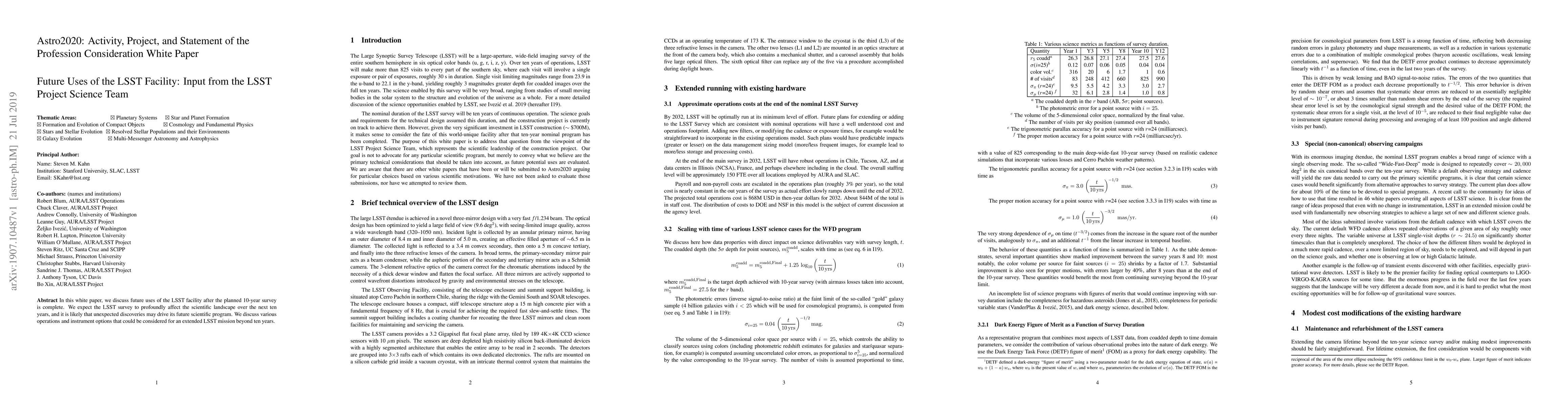 The extended mission aims to capitalize on the profound impact of the LSST survey on the scientific landscape over the next decade.