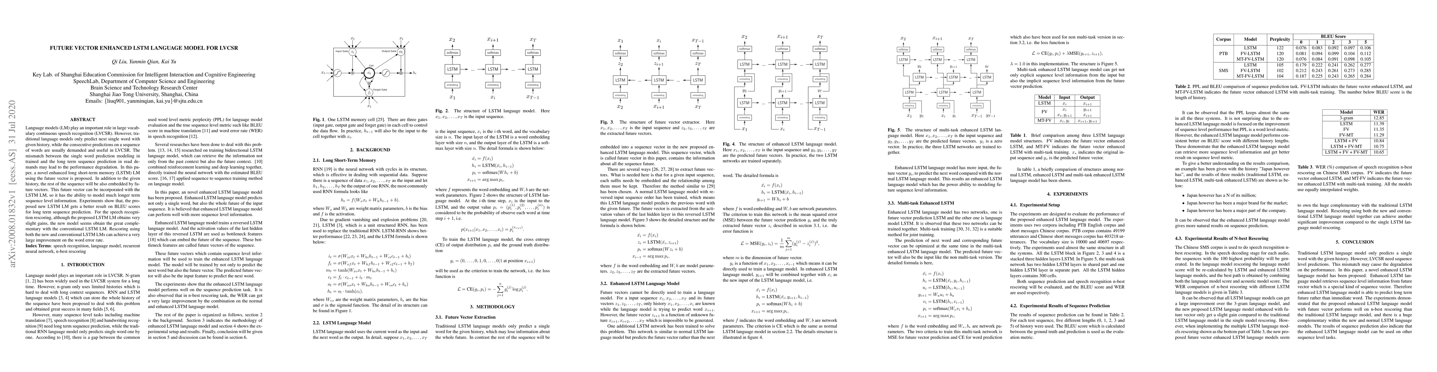 This paper proposes a novel enhanced LSTM language model incorporating future vectors to better predict sequences of words in large vocabulary continuous speech recognition (LVCSR). The model shows improved BLEU scores and significant word error rate reduction when used in conjunction with conventional LSTM LMs for speech recognition rescoring.