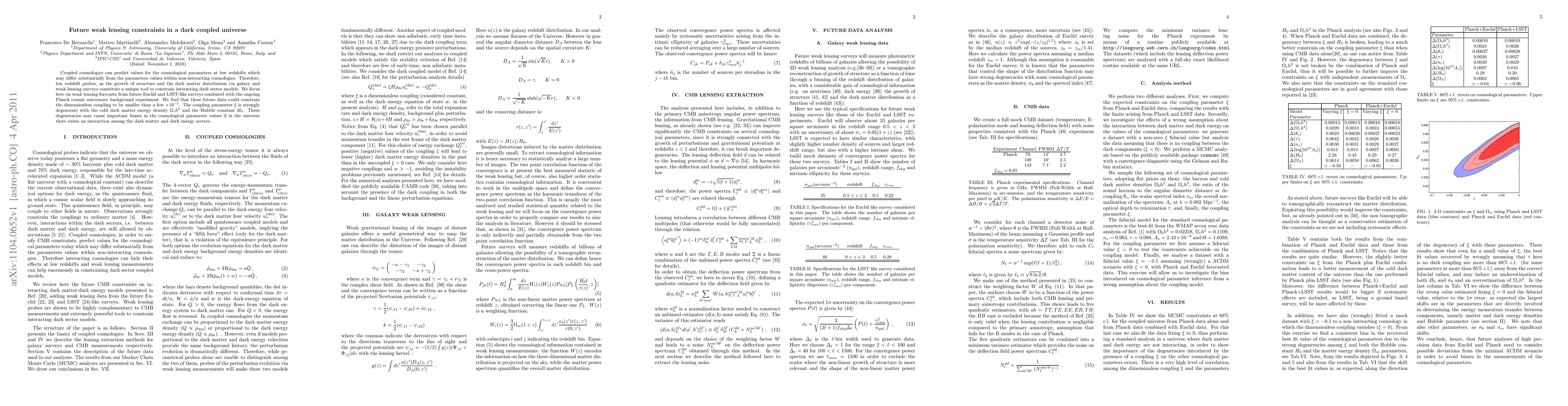 Coupled cosmologies can predict values for the cosmological parameters at low redshifts which may differ substantially from the parameters values within non-interacting cosmologies. Therefore, low redshift probes, as the growth of structure and the dark matter distribution via galaxy and weak lensing surveys constitute a unique tool to constrain interacting dark sector models. We focus here on weak lensing forecasts from future Euclid and LSST-like surveys combined with the ongoing Planck cosmic microwave background experiment. We find that these future data could constrain the dimensionless coupling to be smaller than a few $\times 10^{-2}$. The coupling parameter $\xi$ is strongly degenerate with the cold dark matter energy density $\Omega_{c}h^2$ and the Hubble constant $H_0$.These degeneracies may cause important biases in the cosmological parameter values if in the universe there exists an interaction among the dark matter and dark energy sectors.