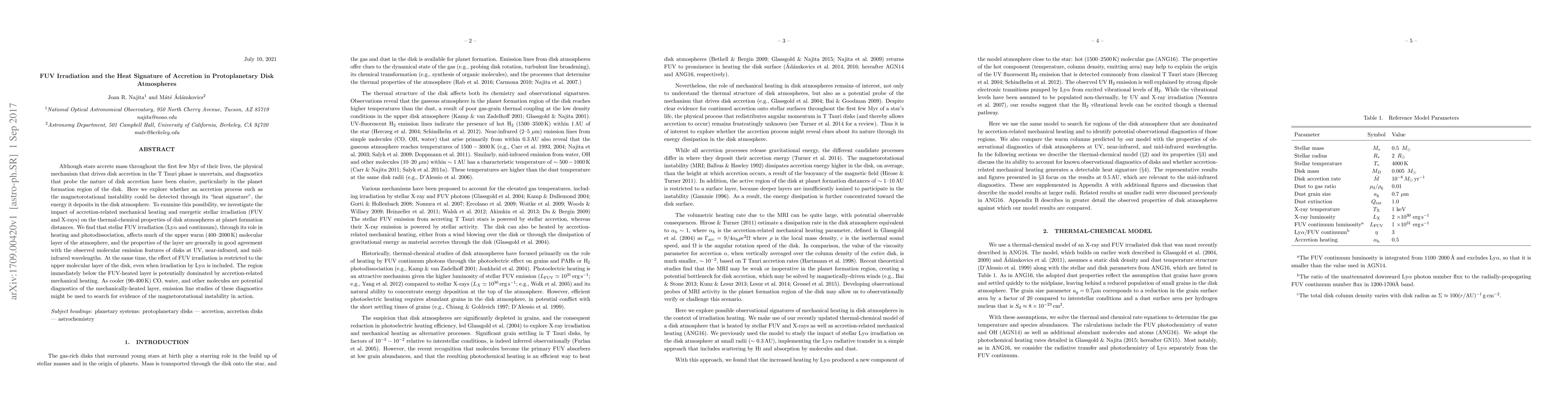 Although stars accrete mass throughout the first few Myr of their lives, the physical mechanism that drives disk accretion in the T Tauri phase is uncertain, and diagnostics that probe the nature of disk accretion have been elusive, particularly in the planet formation region of the disk. Here we explore whether an accretion process such as the magnetorotational instability could be detected through its "heat signature", the energy it deposits in the disk atmosphere. To examine this possibility, we investigate the impact of accretion-related mechanical heating and energetic stellar irradiation (FUV and X-rays) on the thermal-chemical properties of disk atmospheres at planet formation distances. We find that stellar FUV irradiation (Lyman alpha and continuum), through its role in heating and photodissociation, affects much of the upper warm (400-2000 K) molecular layer of the atmosphere, and the properties of the layer are generally in good agreement with the observed molecular emission features of disks at UV, near-infrared, and mid-infrared wavelengths. At the same time, the effect of FUV irradiation is restricted to the upper molecular layer of the disk, even when irradiation by Ly alpha is included. The region immediately below the FUV-heated layer is potentially dominated by accretion-related mechanical heating. As cooler (90-400 K) CO, water, and other molecules are potential diagnostics of the mechanically-heated layer, emission line studies of these diagnostics might be used to search for evidence of the magnetorotational instability in action.