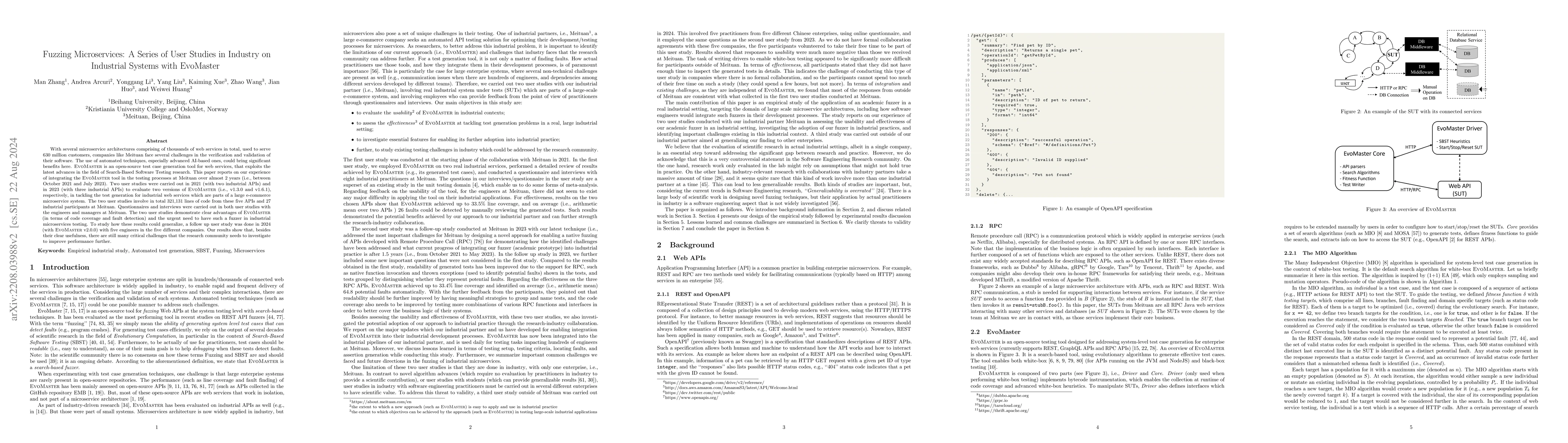 With several microservice architectures comprising of thousands of web services in total, used to serve 630 million customers, companies like Meituan face several challenges in the verification and validation of their software. The use of automated techniques, especially advanced AI-based ones, could bring significant benefits here. EvoMaster is an open-source test case generation tool for web services, that exploits the latest advances in the field of Search-Based Software Testing research. This paper reports on our experience of integrating the EvoMaster tool in the testing processes at Meituan. Experiments were carried out to evaluate its performance in detail on two industrial web services which are parts of a large e-commerce microservices. A questionnaire and interviews were carried out with the engineers and managers at Meituan, to better understand the applicability and usability of fuzzing tools like EvoMaster in real industrial settings. On the one hand, the results of these analyses clearly show that existing tools like EvoMaster are already of benefits for practitioners in industry, e.g., EvoMaster detected 21 real faults and achieved an average of 71.3% coverage for code defining endpoints and 51.7% coverage for code implementing business logic, on two industrial APIs. On the other hand, there are still many critical challenges that the research community has to investigate.