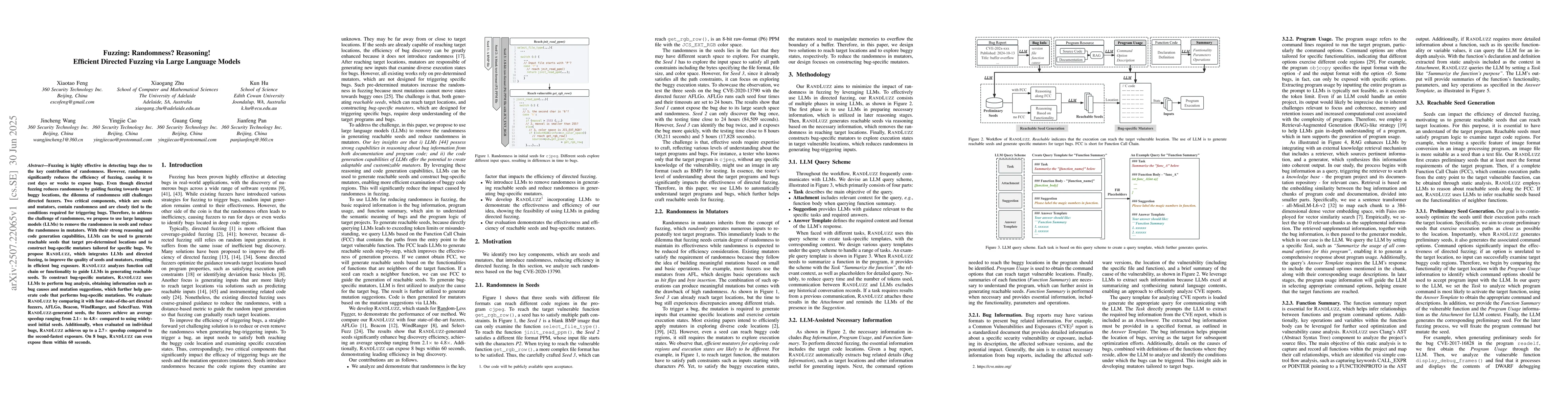This research is significant as it addresses the challenge of randomness in fuzzing, which reduces efficiency, by using LLMs to generate more targeted and efficient seeds and mutators, thereby improving the overall effectiveness and speed of bug detection in software testing.