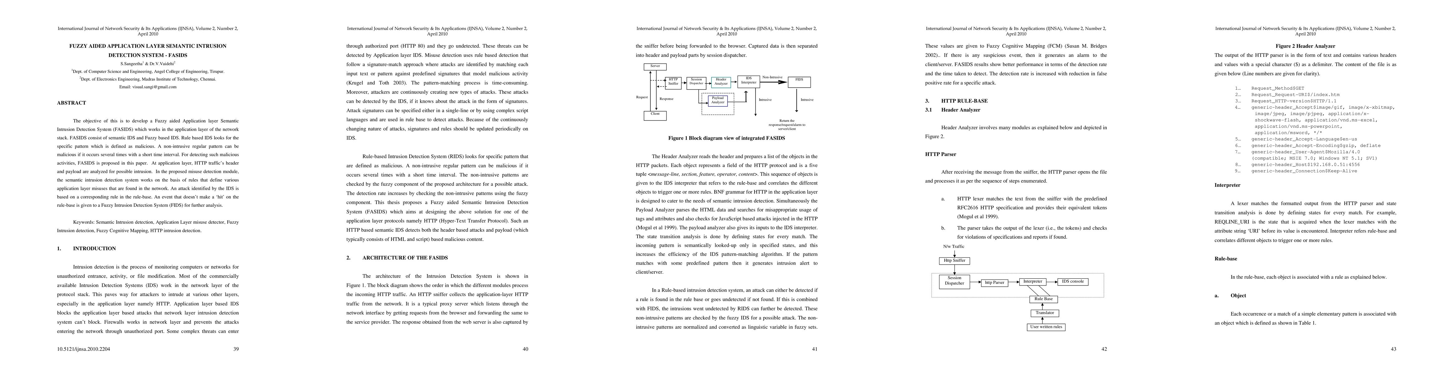This paper proposes a Fuzzy Aided Application Layer Semantic Intrusion Detection System (FASIDS) that analyzes HTTP traffic for potential intrusions. FASIDS combines a semantic IDS for rule-based detection and a Fuzzy IDS for identifying non-standard but potentially malicious patterns.