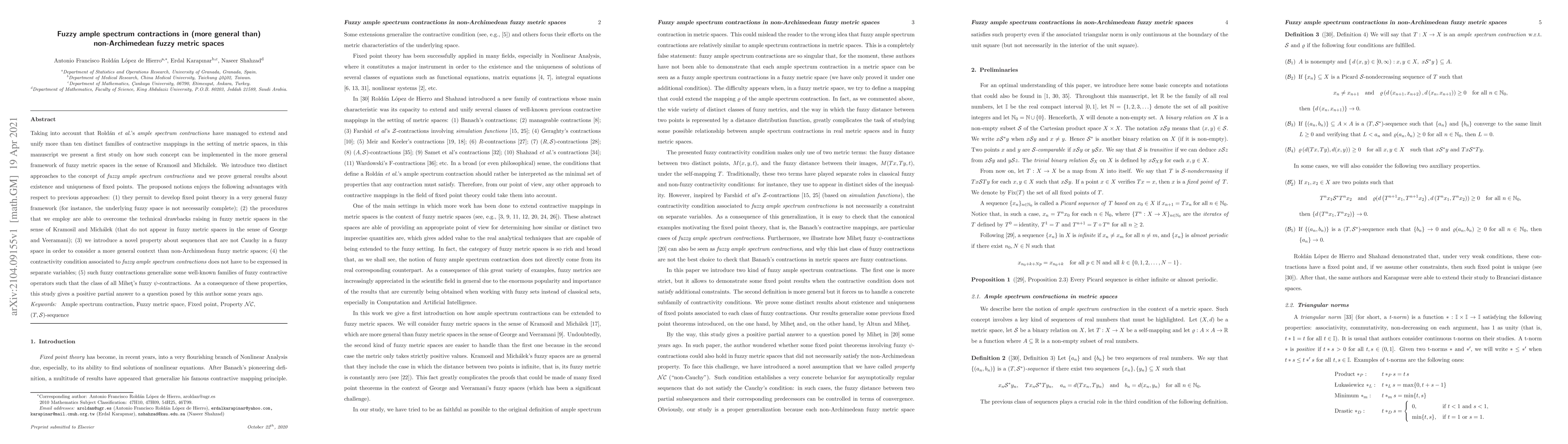This paper introduces new approaches to fuzzy ample spectrum contractions in non-Archimedean fuzzy metric spaces, proving existence and uniqueness of fixed points with several advantages over previous methods.