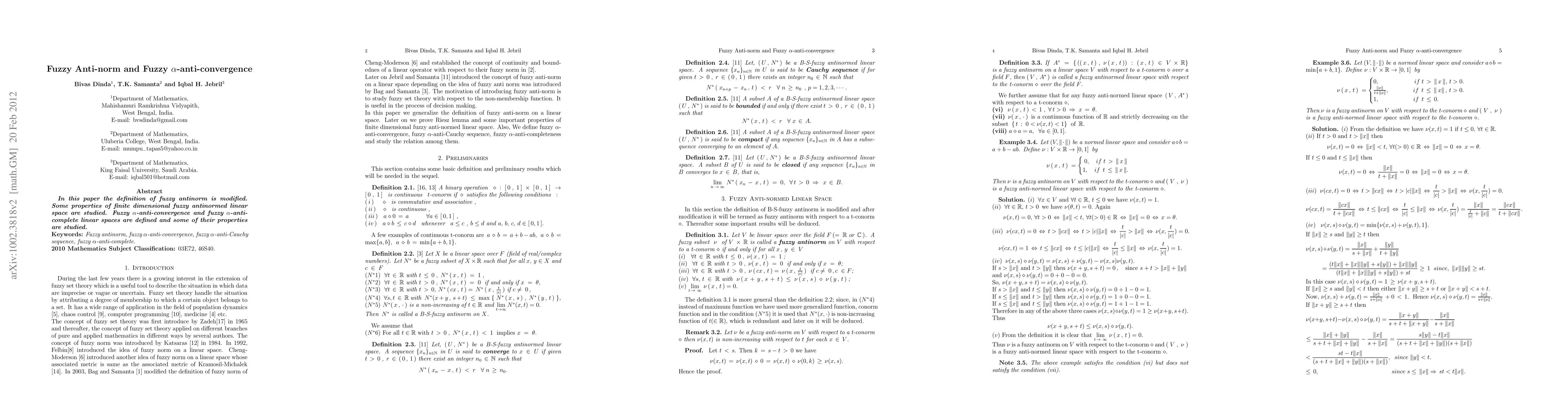 Fuzzy anti-norm and corresponding $\alpha$-norms are defined. A few properties of finite dimensional fuzzy anti-normed linear space are studied. Fuzzy $\alpha$-anti-convergence and fuzzy $\alpha$-anti-complete linear space are defined and a few of their properties are studied.