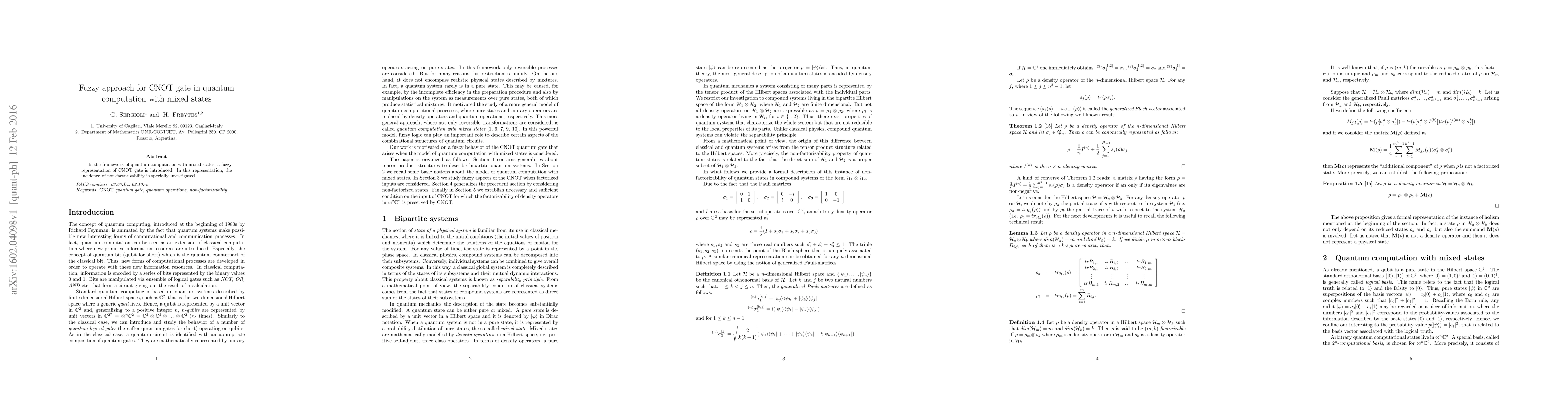 In the framework of quantum computation with mixed states, a fuzzy representation of CNOT gate is introduced. In this representation, the incidence of non-factorizability is specially investigated.