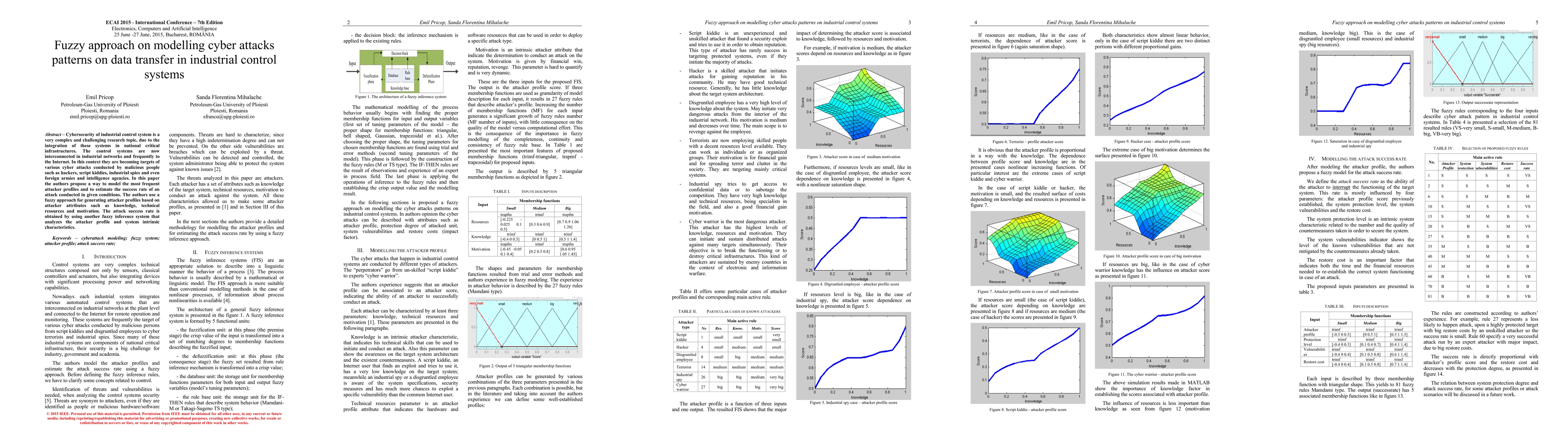 Cybersecurity of industrial control system is a very complex and challenging research topic, due to the integration of these systems in national critical infrastructures. The control systems are now interconnected in industrial networks and frequently to the Internet. In this context they are becoming targets of various cyber attacks conducted by malicious people such as hackers, script kiddies, industrial spies and even foreign armies and intelligence agencies. In this paper the authors propose a way to model the most frequent attacker profiles and to estimate the success rate of an attack conducted in given conditions. The authors use a fuzzy approach for generating attacker profiles based on attacker attributes such as knowledge, technical resources and motivation. The attack success rate is obtained by using another fuzzy inference system that analyzes the attacker profile and system intrinsic characteristics.