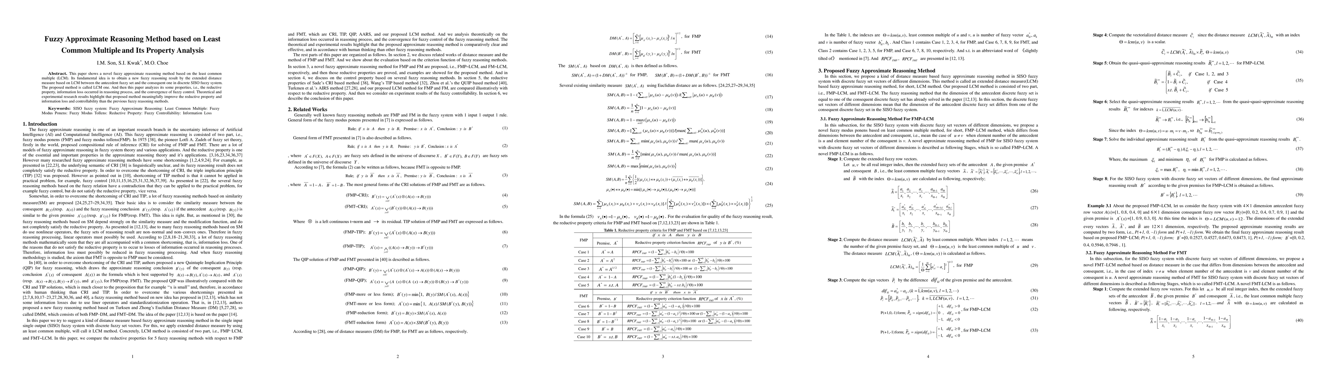 This paper shows a novel fuzzy approximate reasoning method based on the least common multiple (LCM). Its fundamental idea is to obtain a new fuzzy reasoning result by the extended distance measure based on LCM between the antecedent fuzzy set and the consequent one in discrete SISO fuzzy system. The proposed method is called LCM one. And then this paper analyzes its some properties, i.e., the reductive property, information loss occurred in reasoning process, and the convergence of fuzzy control. Theoretical and experimental research results highlight that proposed method meaningfully improve the reductive property and information loss and controllability than the previous fuzzy reasoning methods.