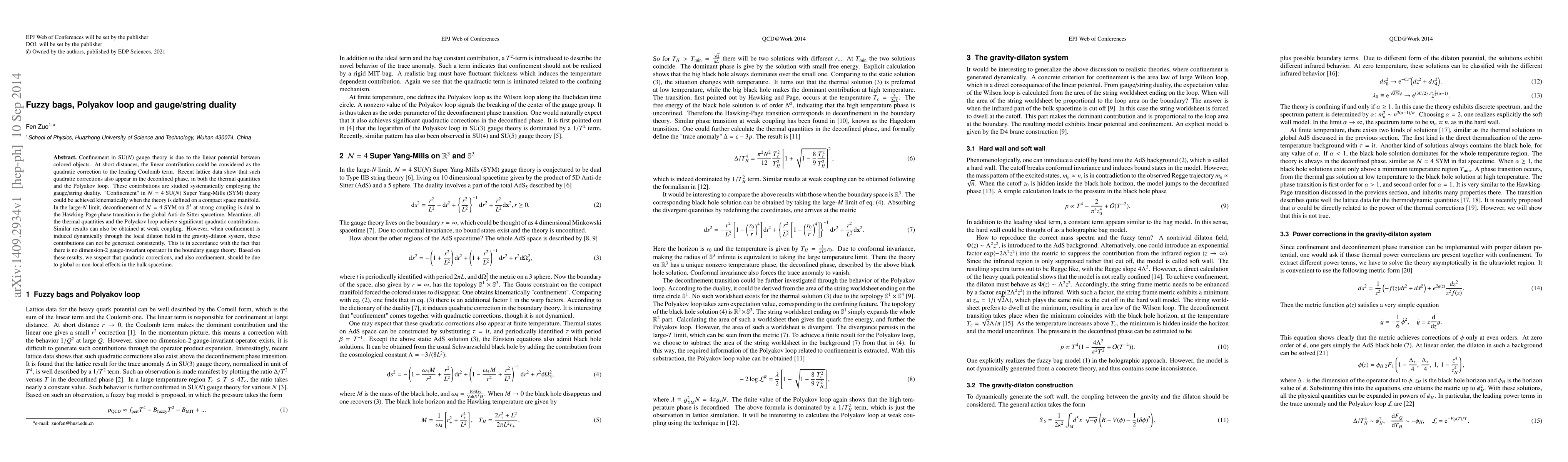 Confinement in SU($N$) gauge theory is due to the linear potential between colored objects. At short distances, the linear contribution could be considered as the quadratic correction to the leading Coulomb term. Recent lattice data show that such quadratic corrections also appear in the deconfined phase, in both the thermal quantities and the Polyakov loop. These contributions are studied systematically employing the gauge/string duality. "Confinement" in ${\mathcal N}=4$ SU($N$) Super Yang-Mills (SYM) theory could be achieved kinematically when the theory is defined on a compact space manifold. In the large-$N$ limit, deconfinement of ${\mathcal N}=4$ SYM on $\mathbb{S}^3$ at strong coupling is dual to the Hawking-Page phase transition in the global Anti-de Sitter spacetime. Meantime, all the thermal quantities and the Polyakov loop achieve significant quadratic contributions. Similar results can also be obtained at weak coupling. However, when confinement is induced dynamically through the local dilaton field in the gravity-dilaton system, these contributions can not be generated consistently. This is in accordance with the fact that there is no dimension-2 gauge-invariant operator in the boundary gauge theory. Based on these results, we suspect that quadratic corrections, and also confinement, should be due to global or non-local effects in the bulk spacetime.