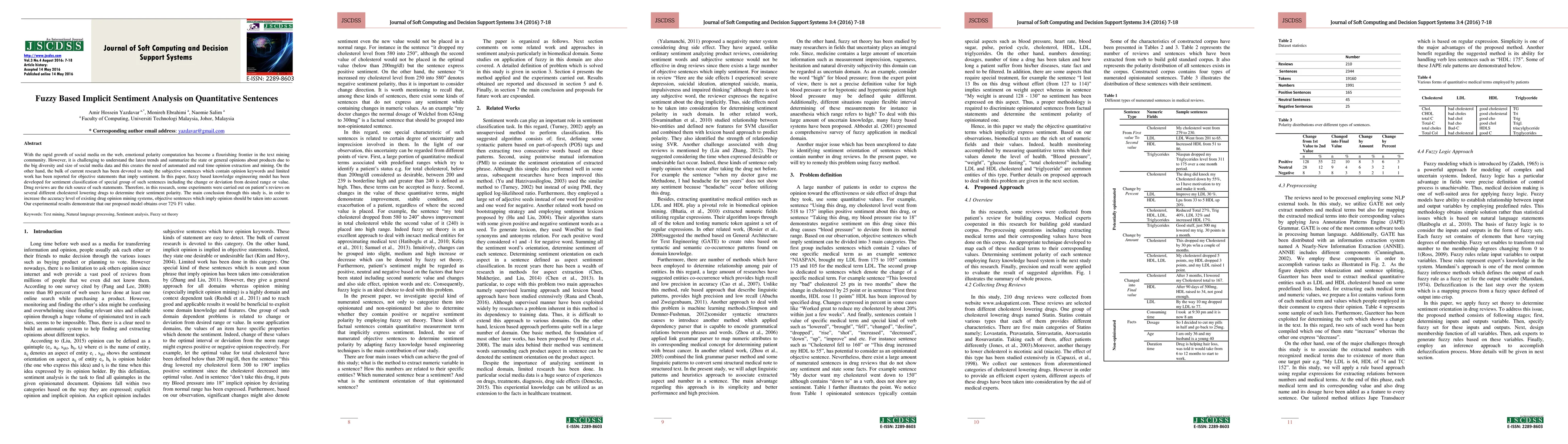This research paper develops a fuzzy-based model for sentiment analysis of objective sentences that imply opinion, such as drug reviews, achieving an F1 value of over 72%.