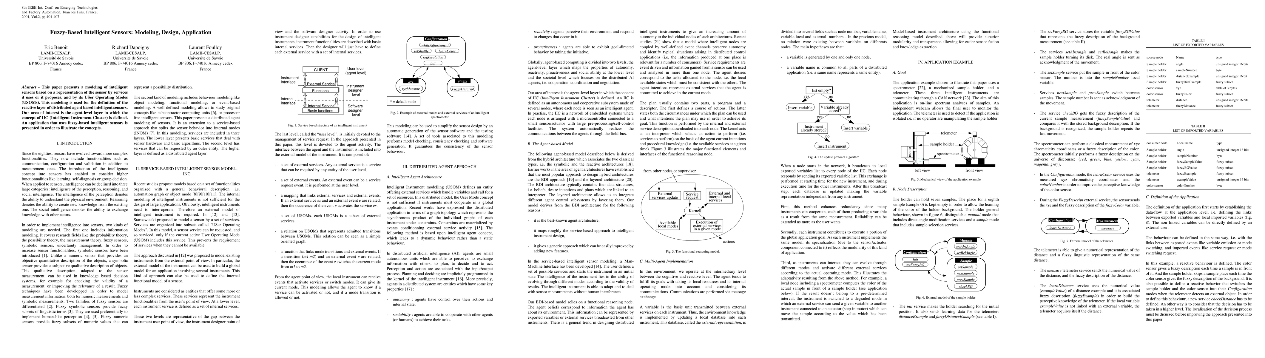 This paper presents a modeling of intelligent sensors based on a representation of the sensor by services it uses or it proposes, and by its USer Operating Modes (USOMs). This modeling is used for the definition of the reactive layer of distributed agent based intelligent sensors. Our area of interest is the agent-level layer in which the concept of IIC (Intelligent Instrument Cluster) is defined. An application that uses fuzzy-based intelligent sensors is presented in order to illustrate the concepts.