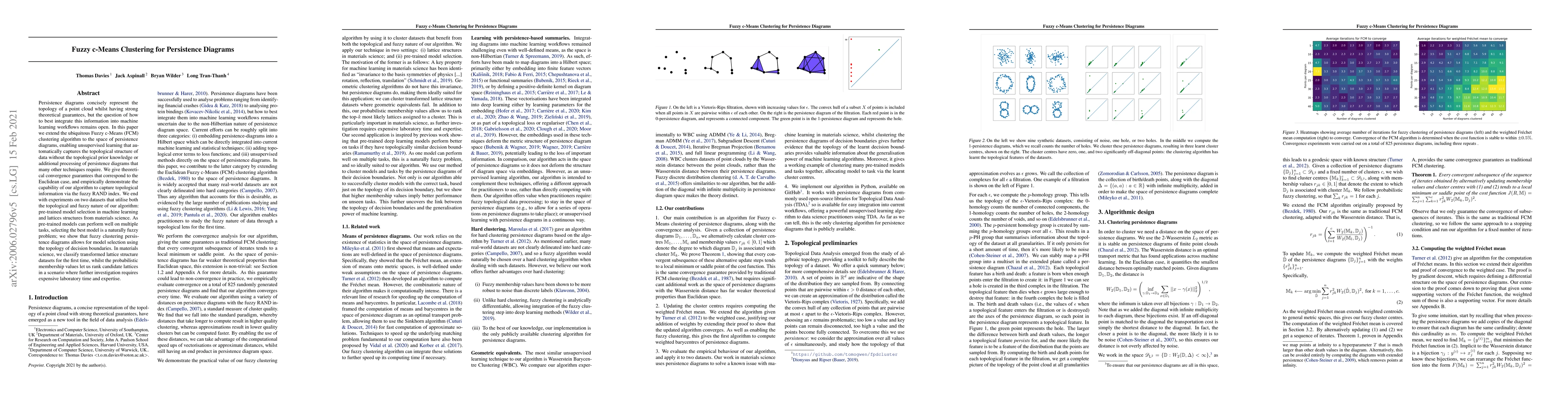 This paper extends the Fuzzy c-Means clustering algorithm to persistence diagrams, enabling unsupervised learning that captures topological data structures without prior knowledge. The proposed method is theoretically sound and demonstrated to effectively utilize topological information in applications like pre-trained model selection and lattice structure classification in materials science.