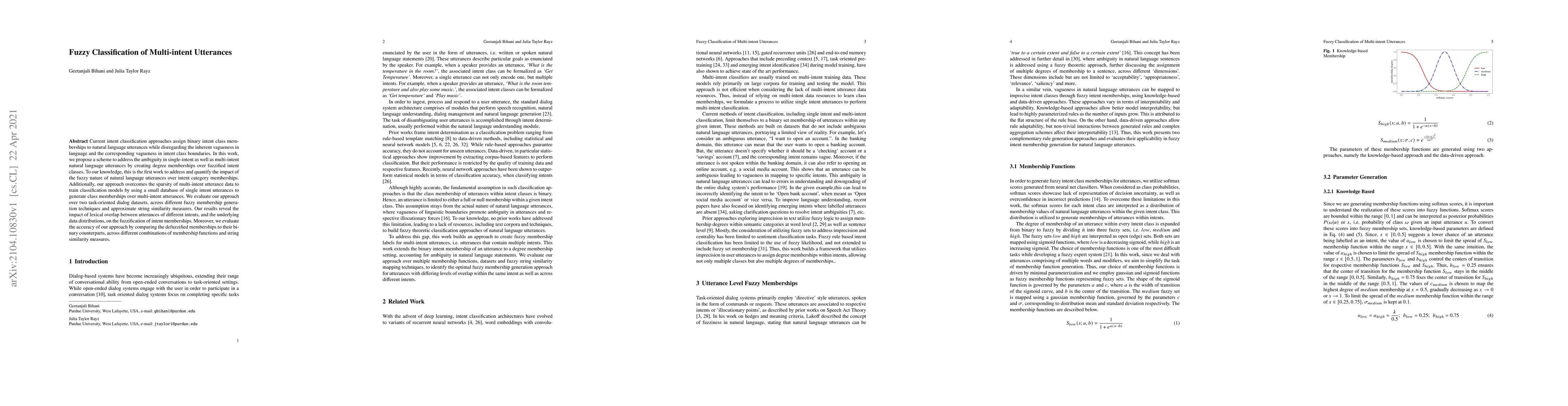 Researchers developed a method to classify multi-intent utterances with fuzzy classification, addressing vagueness in language and intent boundaries. Their approach shows the impact of lexical overlap and data distributions on fuzzification of intent memberships.