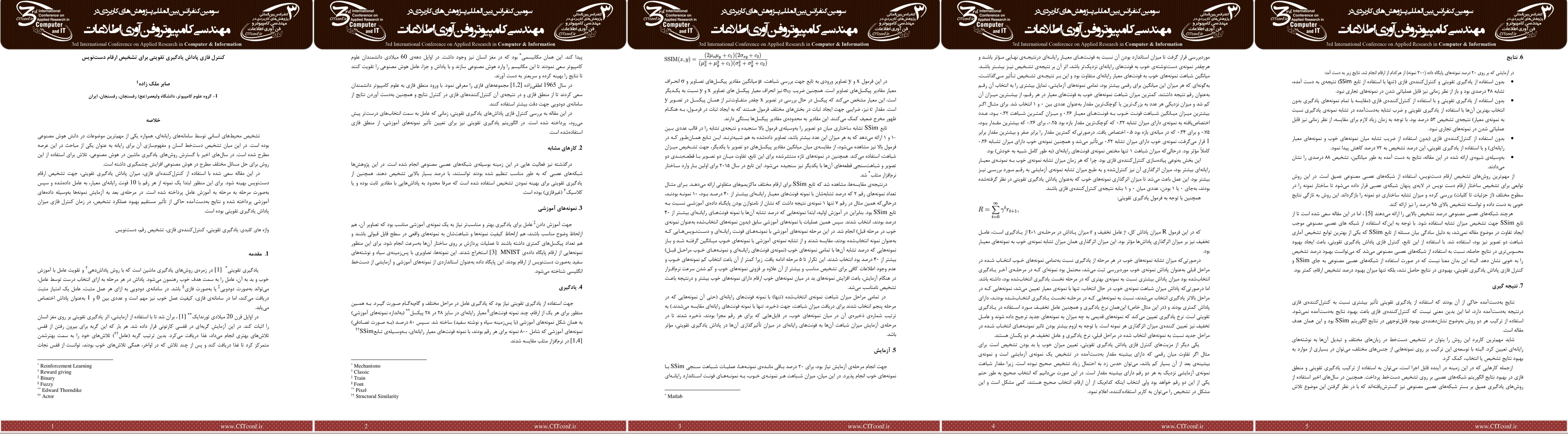 Recognition of human environment with computer systems always was a big deal in artificial intelligence. In this area handwriting recognition and conceptualization of it to computer is an important area in it. In the past years with growth of machine learning in artificial intelligence, efforts to using this technique increased. In this paper is tried to using fuzzy controller, to optimizing amount of reward of reinforcement learning for recognition of handwritten digits. For this aim first a sample of every digit with 10 standard computer fonts, given to actor and then actor is trained. In the next level is tried to test the actor with dataset and then results show improvement of recognition when using fuzzy controller of reinforcement learning.