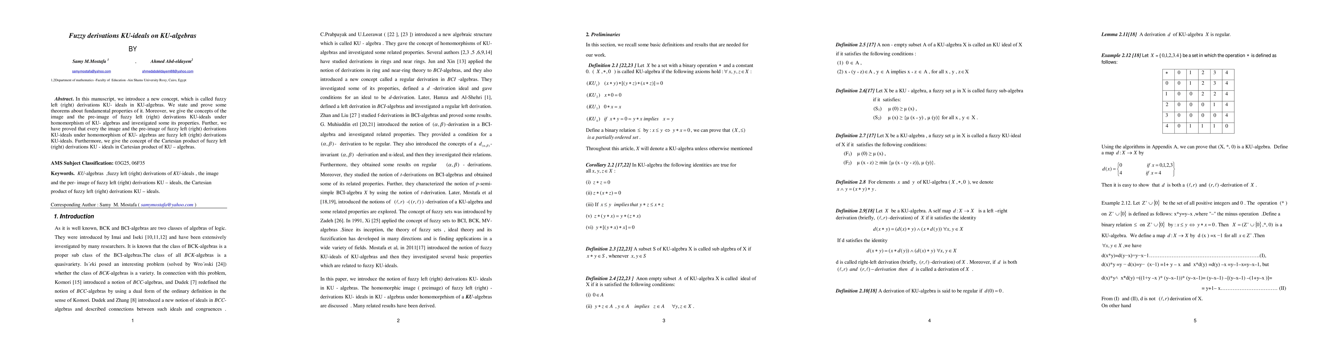 This paper introduces fuzzy left and right derivations KU-ideals in KU-algebras, proving their fundamental properties and exploring their behavior under homomorphisms. It also demonstrates that images and pre-images of these ideals under homomorphisms retain their ideal properties.