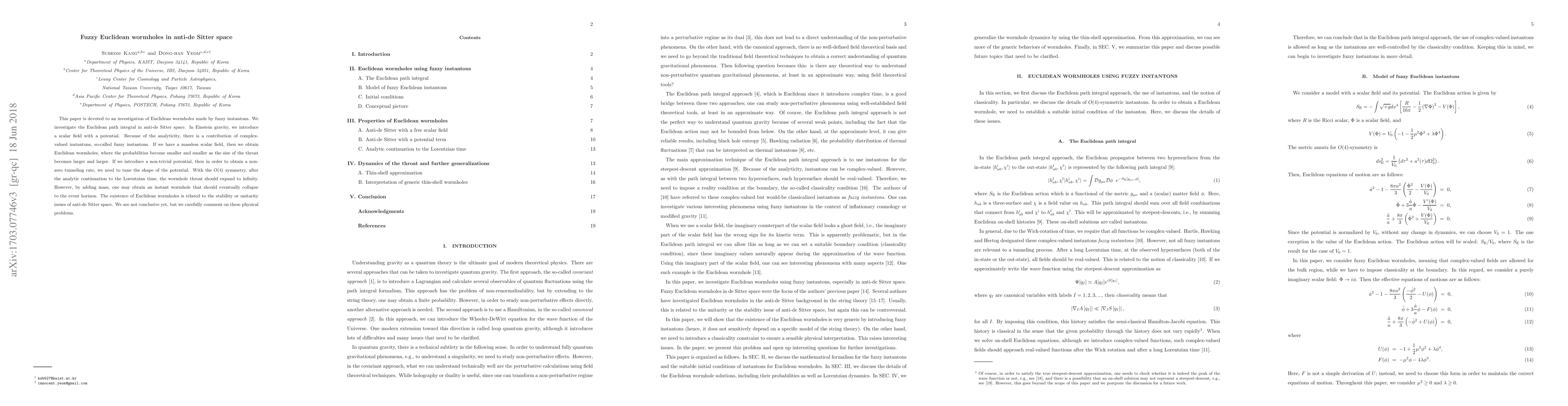 This paper explores Euclidean wormholes formed by fuzzy instantons in anti-de Sitter space, revealing that their probabilities diminish as throat size increases. The study suggests that mass and potential tuning can lead to instant wormholes collapsing to event horizons, raising questions about stability and unitarity in anti-de Sitter space.