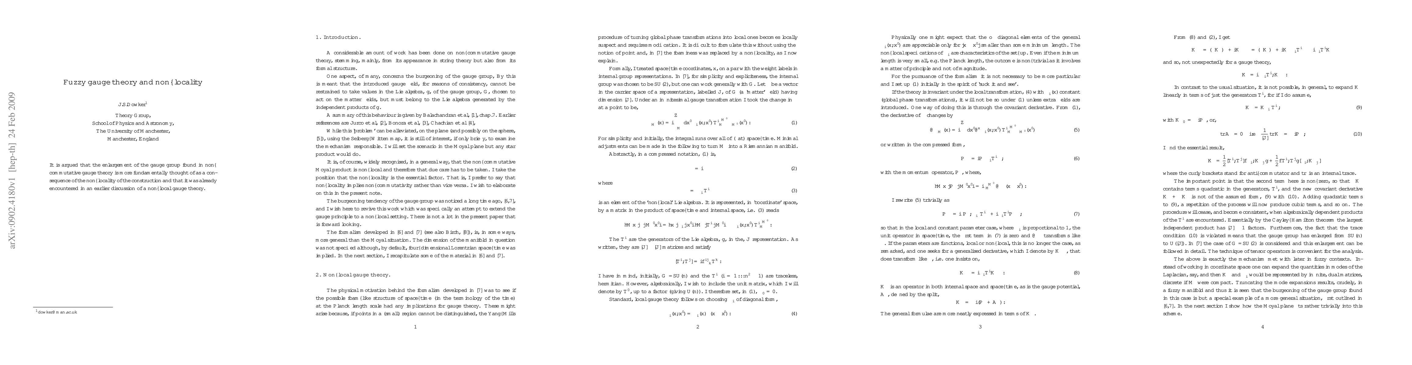 The research explores fuzzy gauge theory and non-locality by enlarging the gauge group in non-commutative gauge theory, attributing this to the non-locality of the construction. It utilizes a non-local gauge transformation and introduces a covariant derivative to investigate the structure arising from this setup.