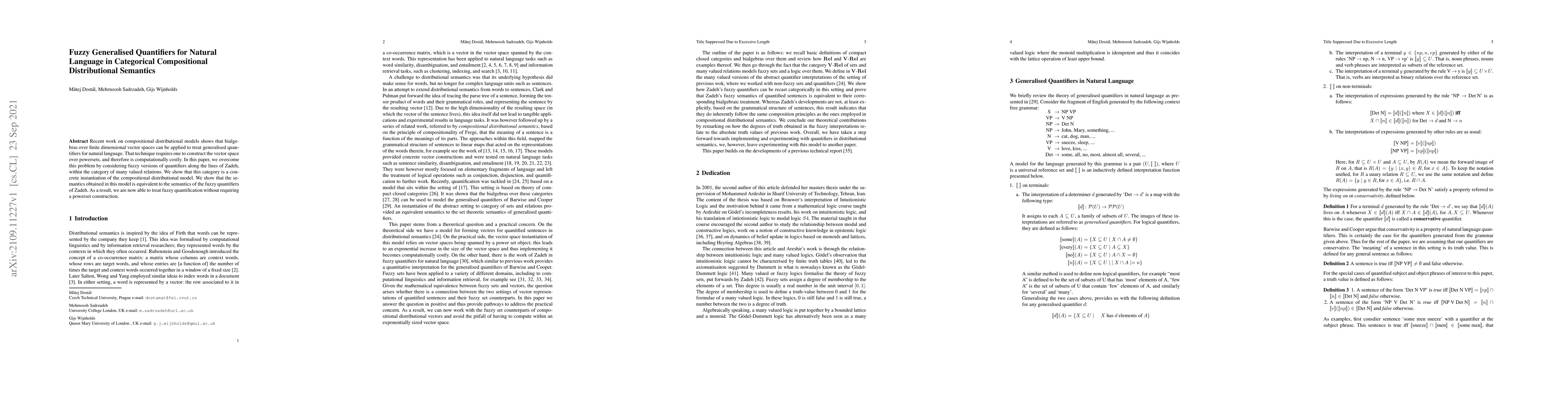 This paper proposes a method to handle fuzzy generalised quantifiers in natural language using categorical compositional distributional semantics, replacing computationally expensive powerset constructions with fuzzy quantifiers in the category of many-valued relations, achieving equivalent semantics without the need for powerset constructions.