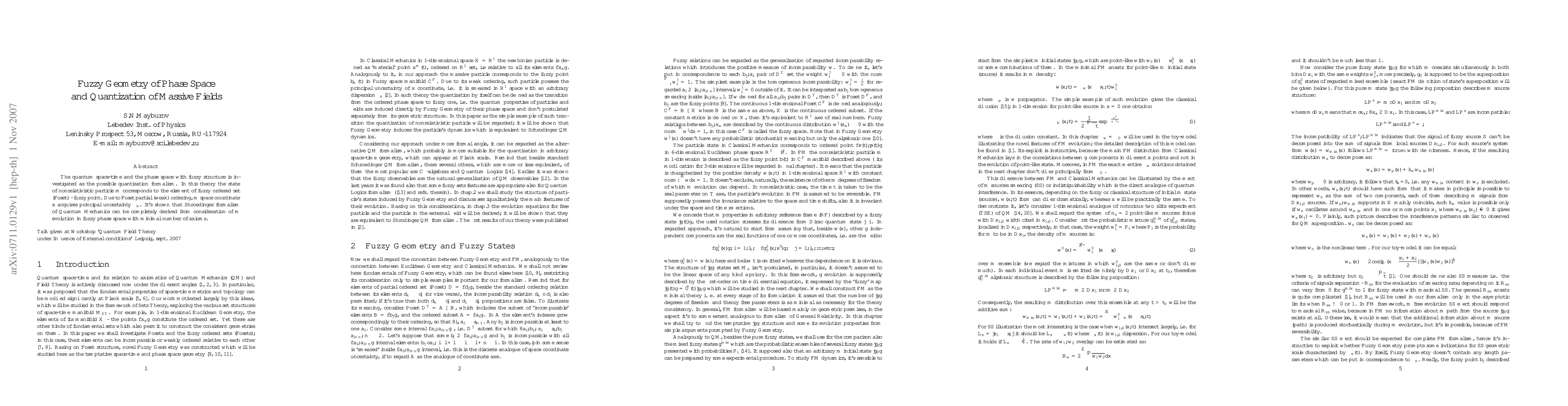 This paper explores the quantization of massive fields using a fuzzy geometry of phase space, where the state of a nonrelativistic particle is represented as a fuzzy point in a fuzzy ordered set (Foset). The derivation of Schrödinger's formalism from particle evolution in this fuzzy phase space demonstrates the potential of this theory as a quantization framework.