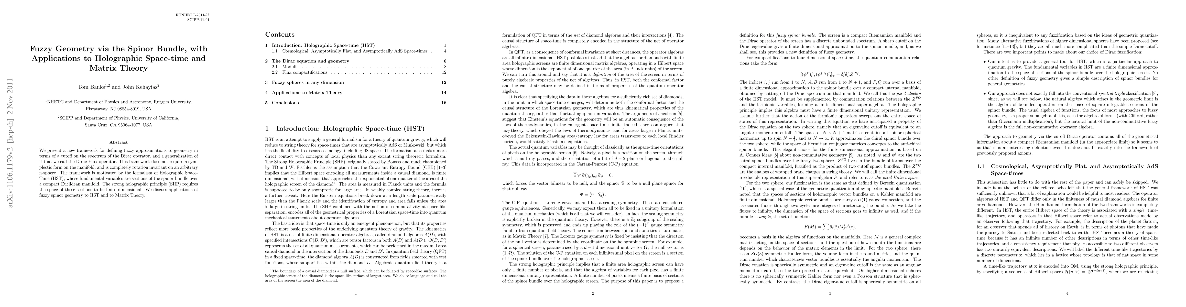 We present a new framework for defining fuzzy approximations to geometry in terms of a cutoff on the spectrum of the Dirac operator, and a generalization of it that we call the Dirac-Flux operator. This framework does not require a symplectic form on the manifold, and is completely rotation invariant on an arbitrary n-sphere. The framework is motivated by the formalism of Holographic Space-Time (HST), whose fundamental variables are sections of the spinor bundle over a compact Euclidean manifold. The strong holographic principle (SHP) requires the space of these sections to be finite dimensional. We discuss applications of fuzzy spinor geometry to HST and to Matrix Theory.