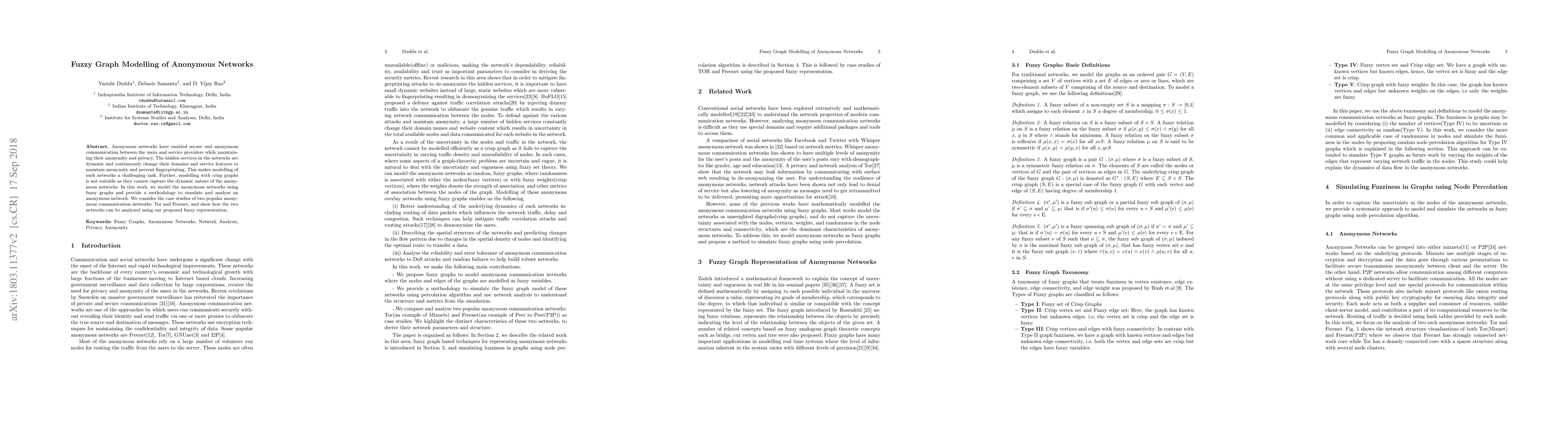 This paper proposes a fuzzy graph modelling approach to represent and analyze anonymous networks like Tor and Freenet, addressing the dynamic nature of their hidden services. The methodology enables simulation and analysis of these networks, enhancing understanding of their anonymity and privacy features.
