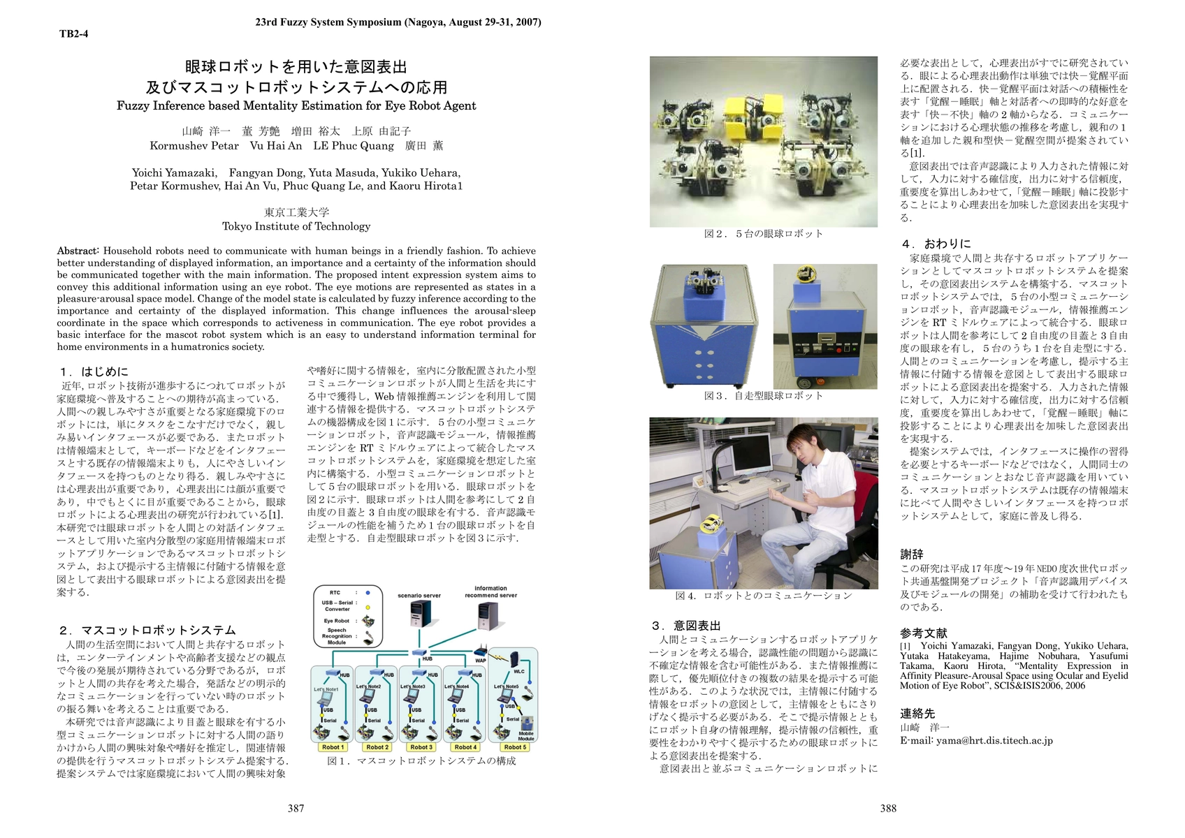 Household robots need to communicate with human beings in a friendly fashion. To achieve better understanding of displayed information, an importance and a certainty of the information should be communicated together with the main information. The proposed intent expression system aims to convey this additional information using an eye robot. The eye motions are represented as states in a pleasure-arousal space model. Change of the model state is calculated by fuzzy inference according to the importance and certainty of the displayed information. This change influences the arousal-sleep coordinate in the space which corresponds to activeness in communication. The eye robot provides a basic interface for the mascot robot system which is an easy to understand information terminal for home environments in a humatronics society.