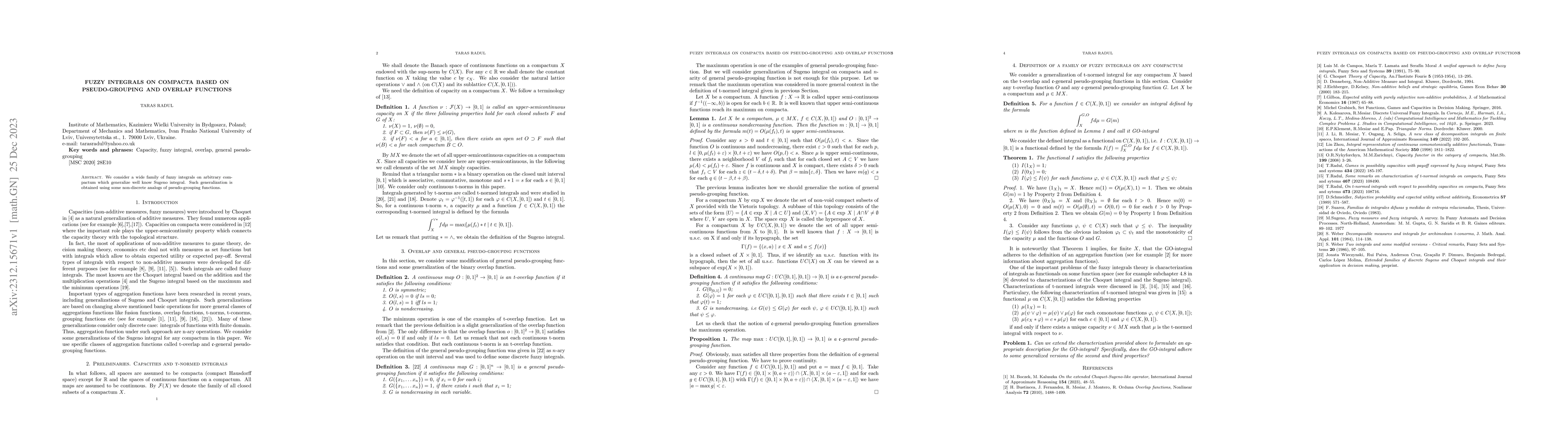 Summary: This paper generalizes the Sugeno integral for fuzzy integrals on arbitrary compact sets using non-discrete pseudo-grouping functions, introducing a new approach to handle overlap functions in fuzzy integration.