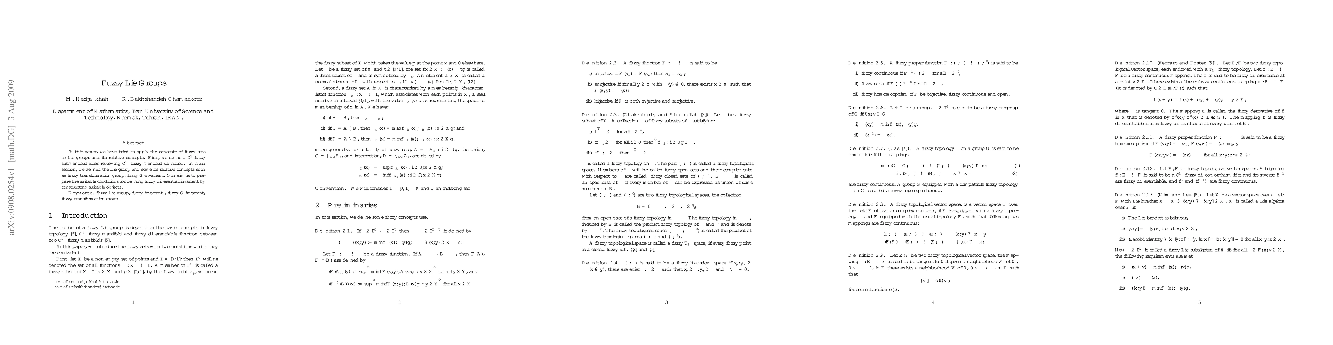 This paper explores the application of fuzzy set theory to Lie groups, defining a ${\cal C}^1$ fuzzy submanifold and introducing concepts like fuzzy transformation groups and fuzzy $G$-invariants to establish the groundwork for defining fuzzy differential invariants.