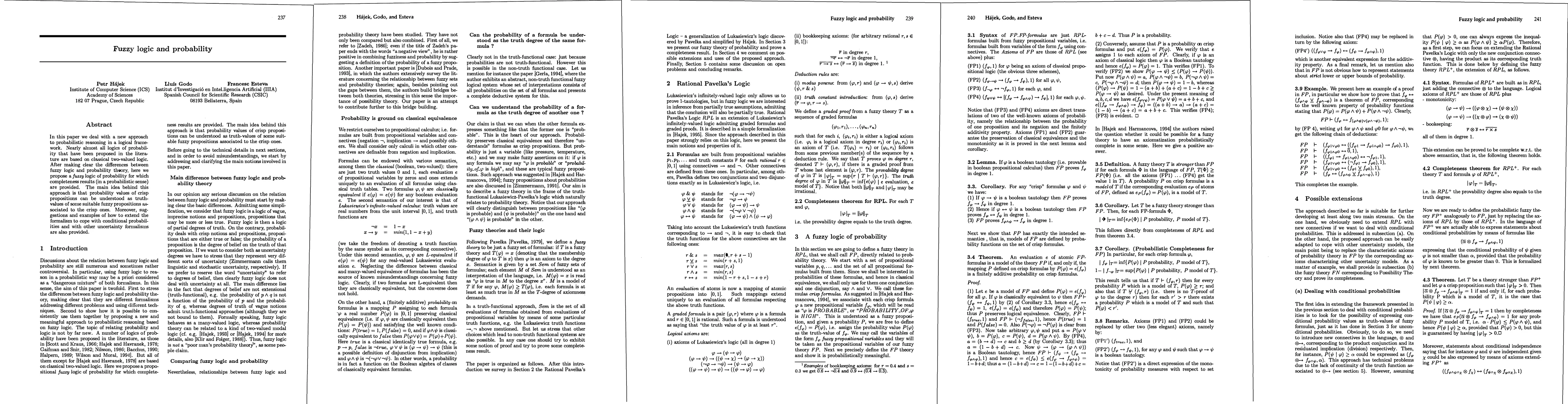 This paper introduces a novel fuzzy logic approach to probabilistic reasoning, differing from traditional two-valued logic. It proposes a fuzzy logic of probability, providing completeness results and extending the formalism to handle conditional probabilities and other uncertainty models.