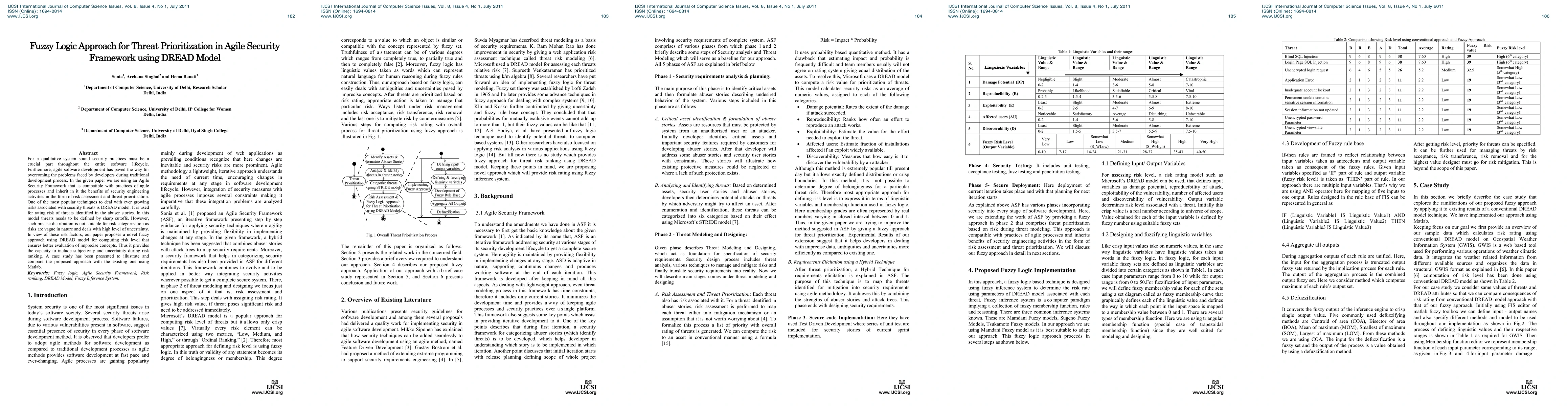 This paper proposes a fuzzy logic approach for threat prioritization within an Agile Security Framework using the DREAD model, addressing the vagueness and uncertainty in risk assessment. The method enhances risk evaluation by incorporating subjectivity and uncertainty, demonstrated through a case study comparison using Matlab.