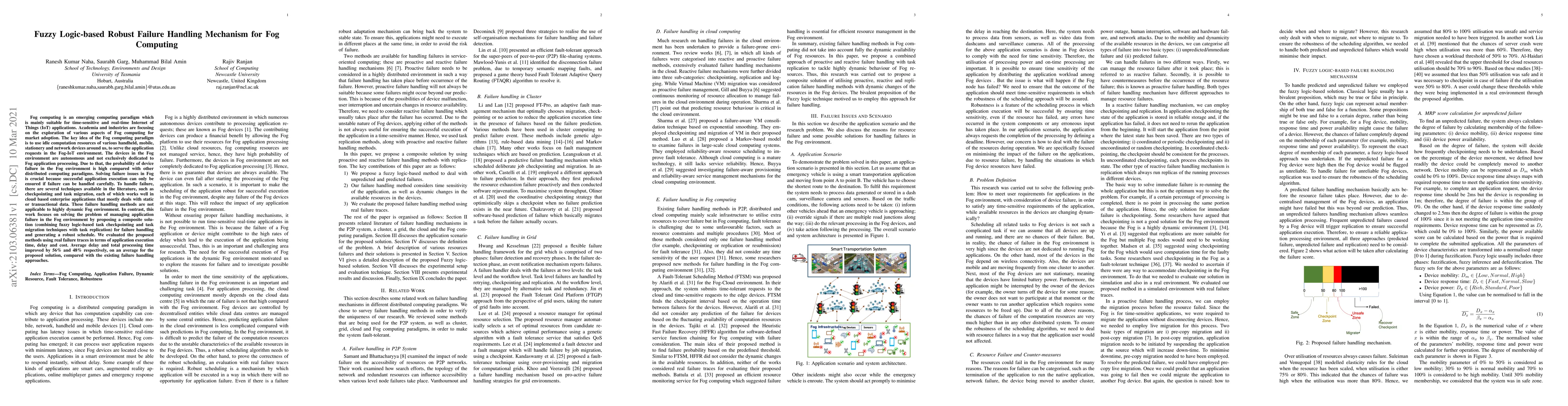 This paper proposes a fuzzy logic-based mechanism for robust failure handling in fog computing environments, combining task checkpointing, task migration, and task replication. The evaluation shows a 56% reduction in average delay and a 48% decrease in total processing time compared to existing methods.