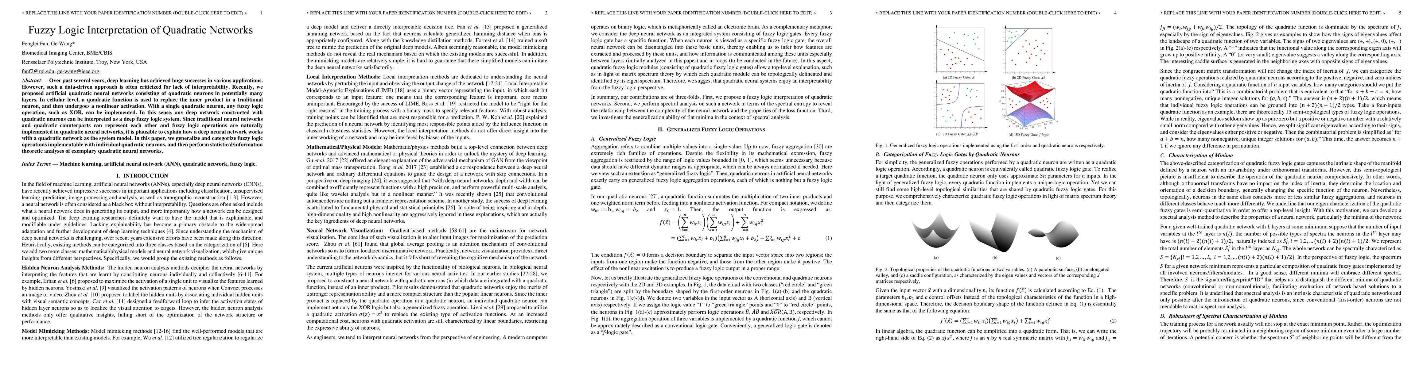 Over past several years, deep learning has achieved huge successes in various applications. However, such a data-driven approach is often criticized for lack of interpretability. Recently, we proposed artificial quadratic neural networks consisting of second-order neurons in potentially many layers. In each second-order neuron, a quadratic function is used in the place of the inner product in a traditional neuron, and then undergoes a nonlinear activation. With a single second-order neuron, any fuzzy logic operation, such as XOR, can be implemented. In this sense, any deep network constructed with quadratic neurons can be interpreted as a deep fuzzy logic system. Since traditional neural networks and second-order counterparts can represent each other and fuzzy logic operations are naturally implemented in second-order neural networks, it is plausible to explain how a deep neural network works with a second-order network as the system model. In this paper, we generalize and categorize fuzzy logic operations implementable with individual second-order neurons, and then perform statistical/information theoretic analyses of exemplary quadratic neural networks.