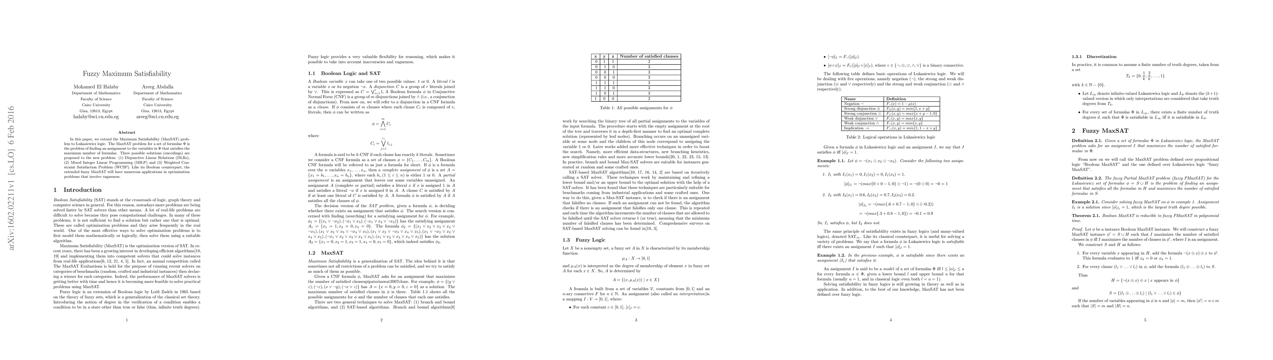 In this paper, we extend the Maximum Satisfiability (MaxSAT) problem to {\L}ukasiewicz logic. The MaxSAT problem for a set of formulae {\Phi} is the problem of finding an assignment to the variables in {\Phi} that satisfies the maximum number of formulae. Three possible solutions (encodings) are proposed to the new problem: (1) Disjunctive Linear Relations (DLRs), (2) Mixed Integer Linear Programming (MILP) and (3) Weighted Constraint Satisfaction Problem (WCSP). Like its Boolean counterpart, the extended fuzzy MaxSAT will have numerous applications in optimization problems that involve vagueness.