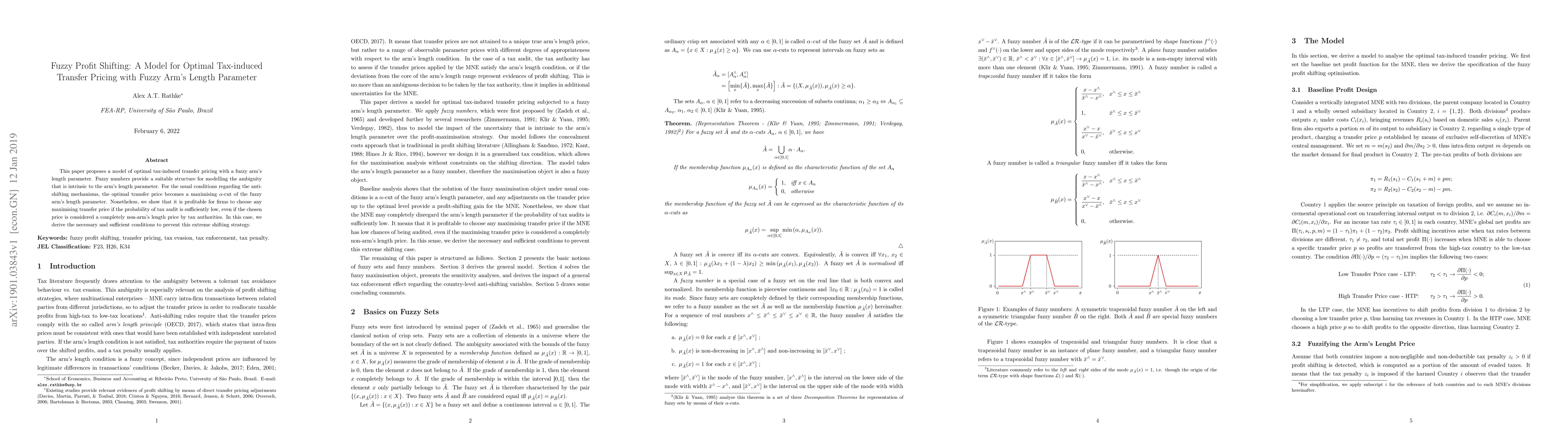 This paper proposes a model of optimal tax-induced transfer pricing with a fuzzy arm's length parameter. Fuzzy numbers provide a suitable structure for modelling the ambiguity that is intrinsic to the arm's length parameter. For the usual conditions regarding the anti-shifting mechanisms, the optimal transfer price becomes a maximising $\alpha$-cut of the fuzzy arm's length parameter. Nonetheless, we show that it is profitable for firms to choose any maximising transfer price if the probability of tax audit is sufficiently low, even if the chosen price is considered a completely non-arm's length price by tax authorities. In this case, we derive the necessary and sufficient conditions to prevent this extreme shifting strategy