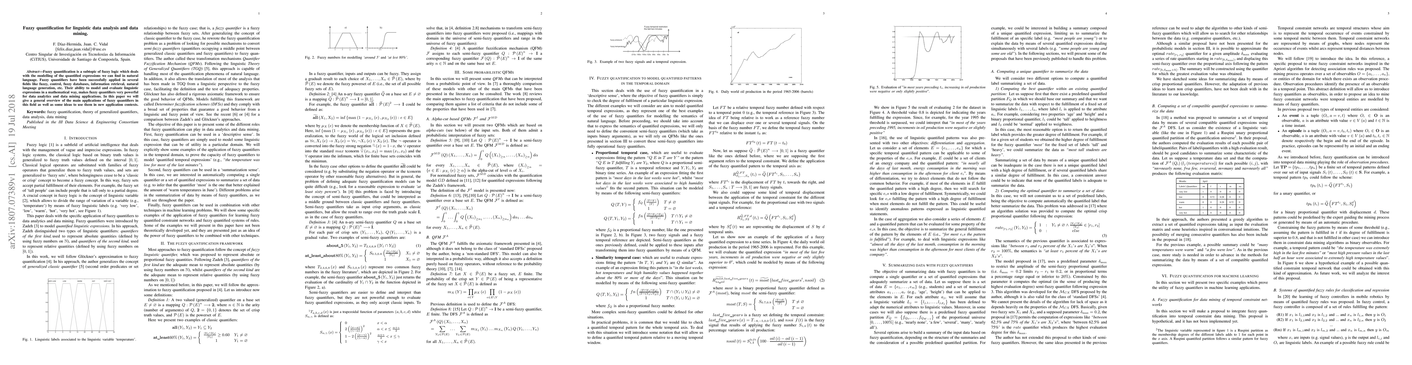 The paper provides an overview of fuzzy quantifiers, their applications, and proposes methods for their quantification, including probabilistic quantifier fuzzy mechanisms (QFMs) and their application in temporal data analysis.