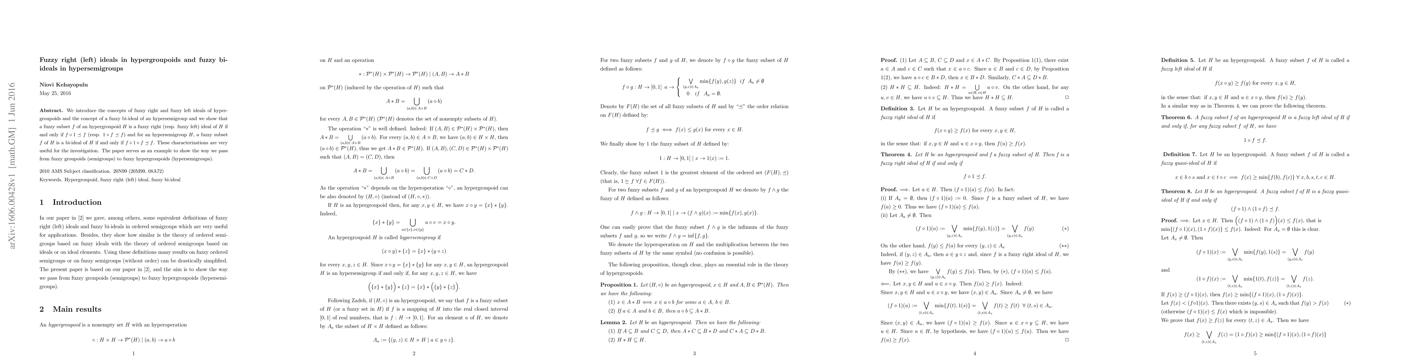 This paper introduces fuzzy right and left ideals in hypergroupoids and fuzzy bi-ideals in hypersemigroups, providing characterizations for these concepts. It demonstrates that fuzzy subsets in hypergroupoids and hypersemigroups meet specific conditions to qualify as ideals, aiding in their investigation.