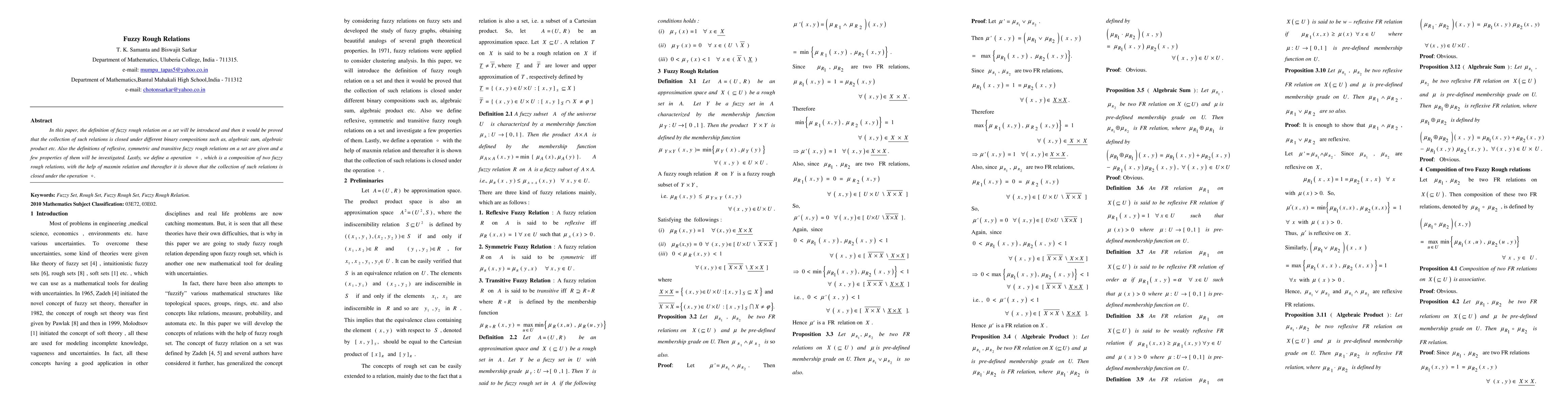 This paper introduces fuzzy rough relations and proves that their collection is closed under various binary compositions, including algebraic sum and product. It also defines reflexive, symmetric, and transitive fuzzy rough relations and investigates their properties, concluding with a new composition operation using maxmin relation that maintains closure.