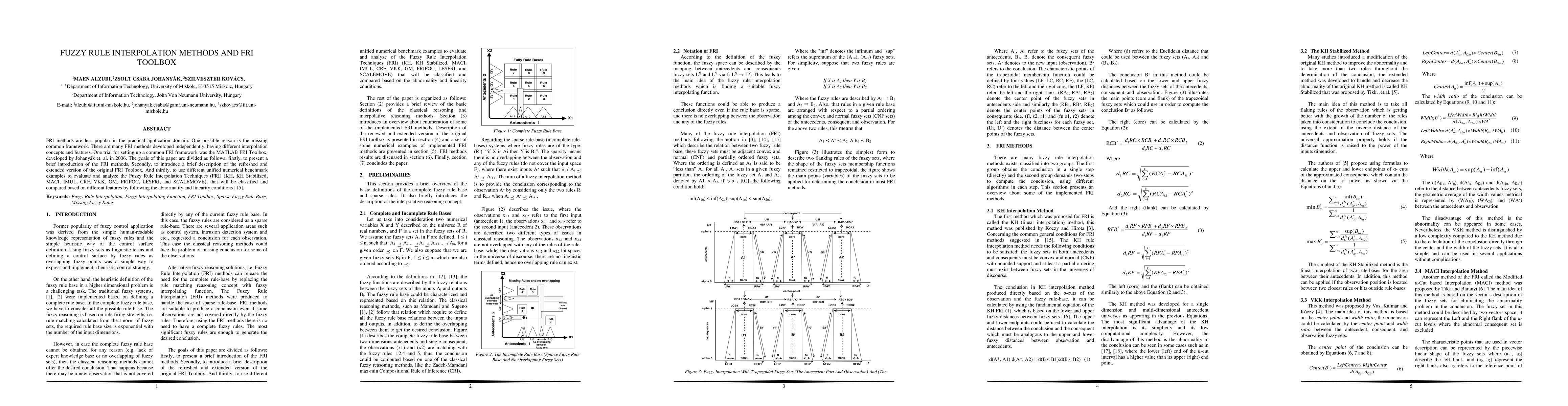 This paper introduces Fuzzy Rule Interpolation (FRI) methods and presents an updated FRI Toolbox for MATLAB. It evaluates various FRI techniques using unified benchmarks, comparing them based on linearity and abnormality conditions.