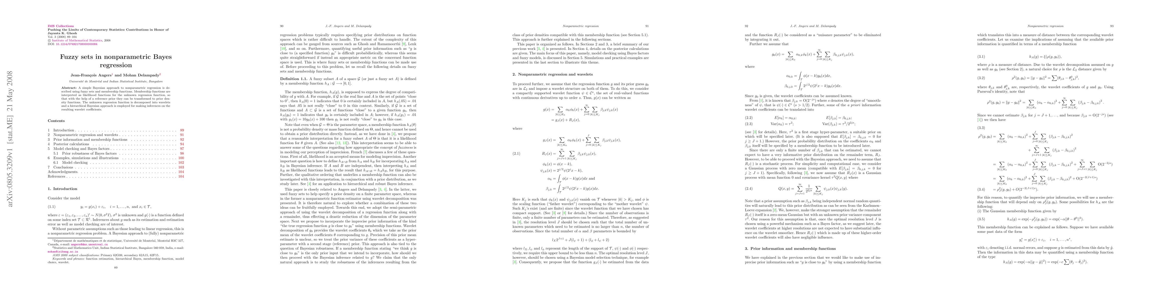 A simple Bayesian approach to nonparametric regression is described using fuzzy sets and membership functions. Membership functions are interpreted as likelihood functions for the unknown regression function, so that with the help of a reference prior they can be transformed to prior density functions. The unknown regression function is decomposed into wavelets and a hierarchical Bayesian approach is employed for making inferences on the resulting wavelet coefficients.