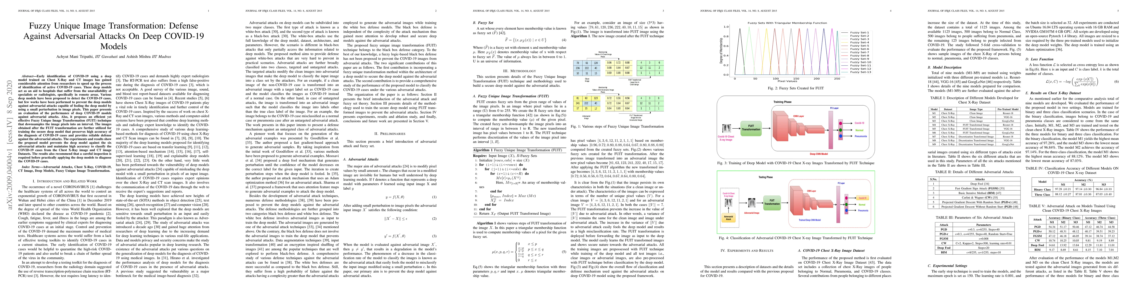 This paper evaluates the resilience of deep COVID-19 detection models against adversarial attacks and proposes a Fuzzy Unique Image Transformation (FUIT) technique to enhance model security. The FUIT method effectively defends against six types of adversarial attacks while maintaining high diagnostic accuracy for COVID-19 from Chest X-Ray and CT images.