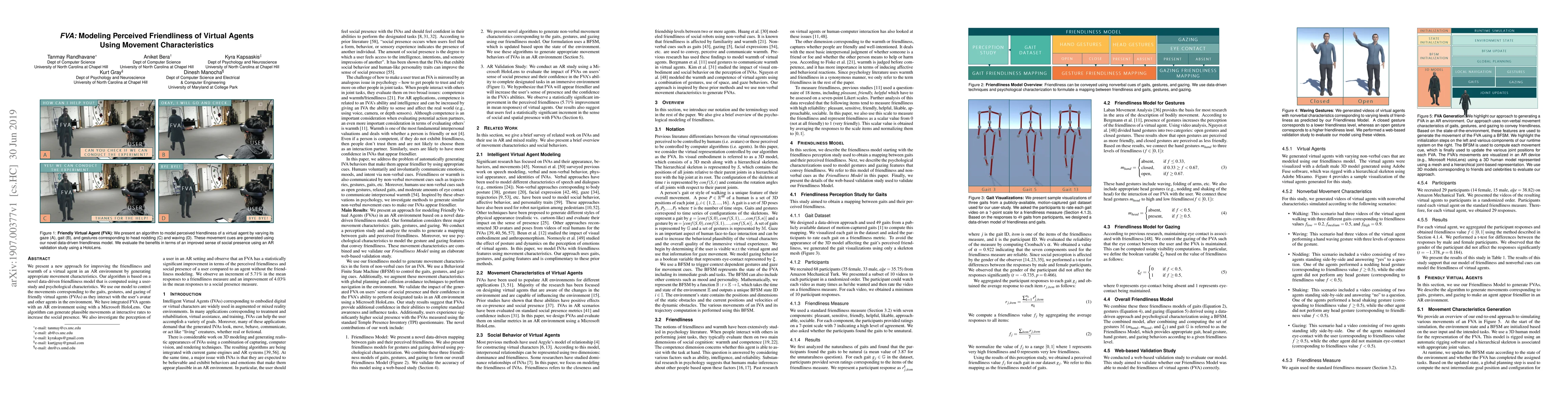 This paper introduces an algorithm to improve the friendliness of virtual agents in AR environments by modeling appropriate movement characteristics based on psychological data. The study shows a significant increase in perceived friendliness and social presence of the agents, with a 5.71% improvement in friendliness and a 4.03% improvement in social presence.