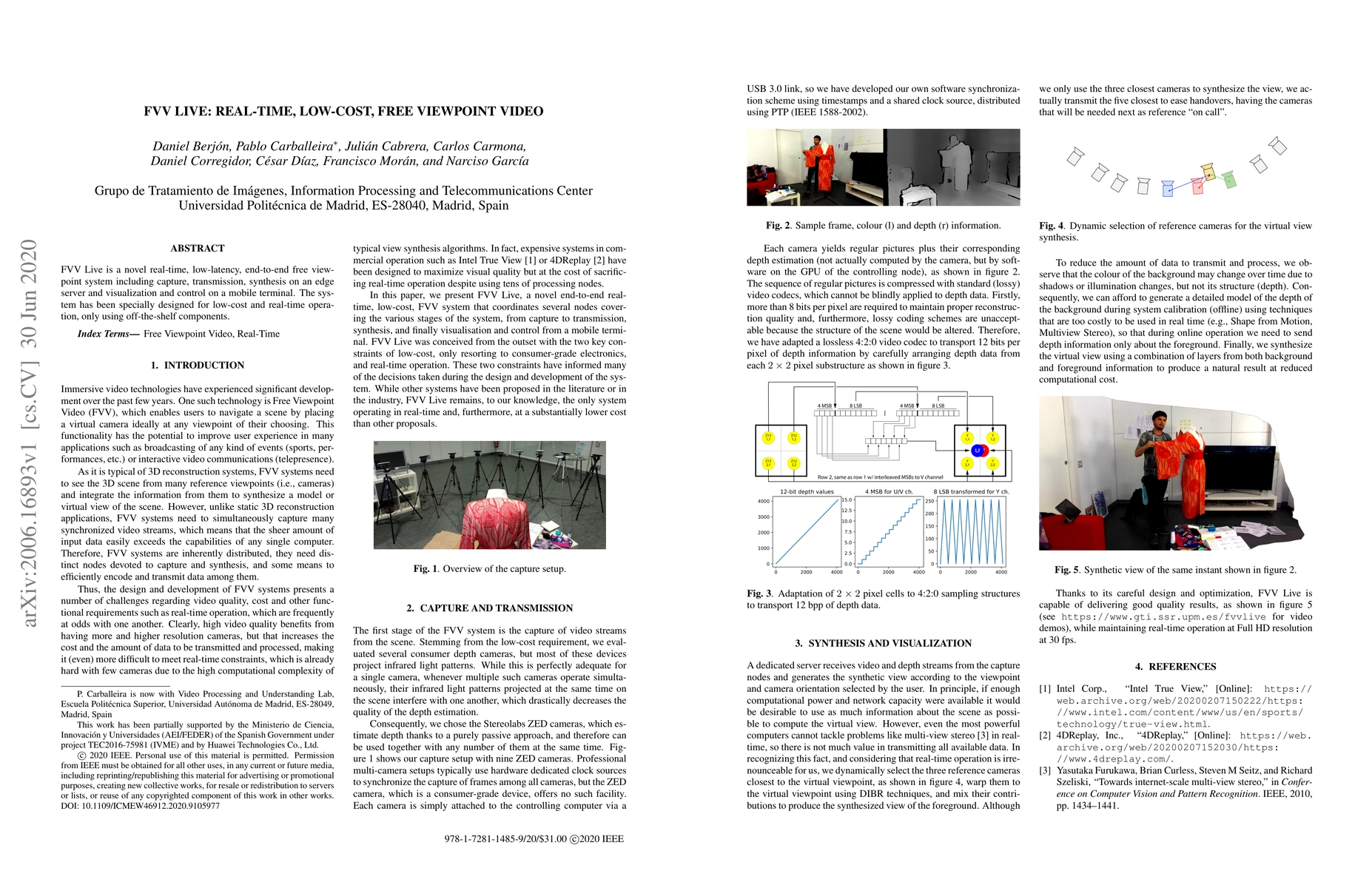 FVV Live is a novel real-time, low-latency, end-to-end free viewpoint system including capture, transmission, synthesis on an edge server and visualization and control on a mobile terminal. The system has been specially designed for low-cost and real-time operation, only using off-the-shelf components.