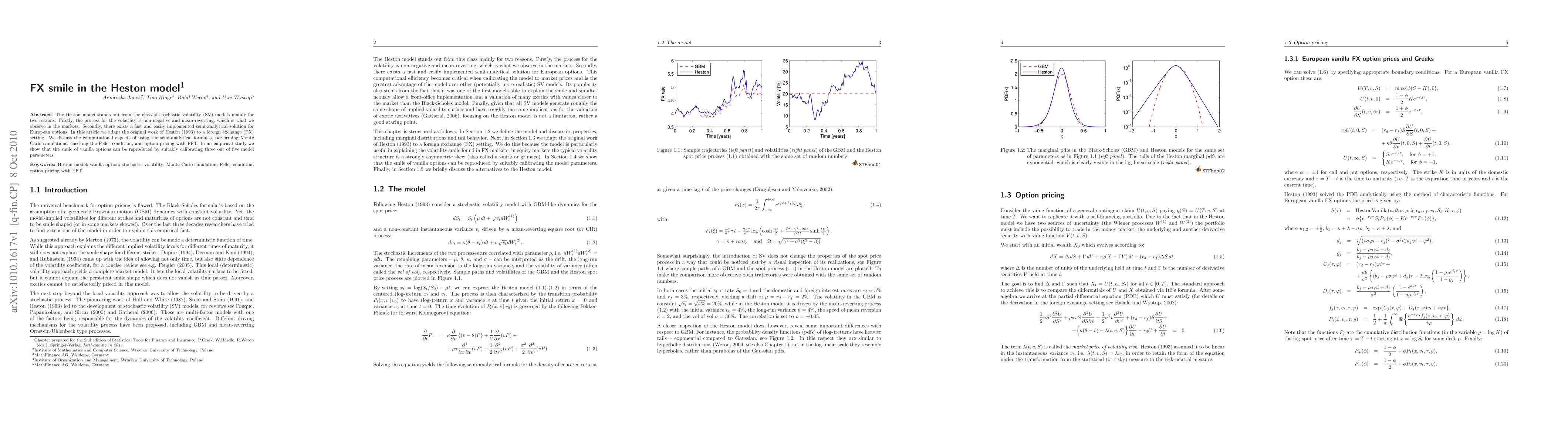 This paper adapts the Heston stochastic volatility model to foreign exchange markets, focusing on the computational aspects of semi-analytical solutions and Monte Carlo simulations. It demonstrates that the model can reproduce the FX smile by calibrating three parameters, highlighting the model's practical applicability.