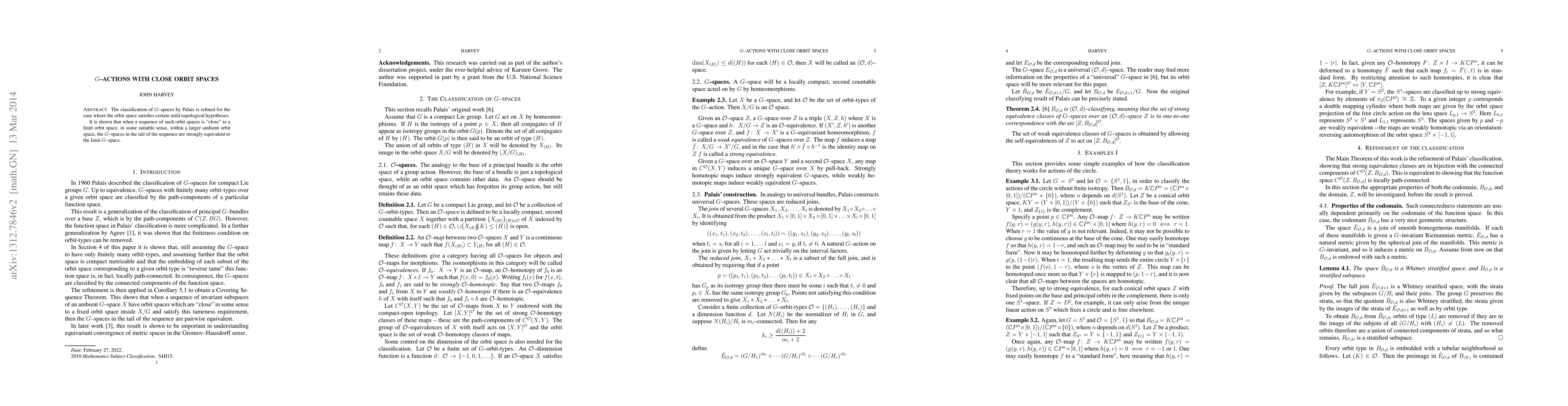 Researchers refine Palais' classification of G-spaces under mild topological hypotheses, showing that sequences with close orbit spaces converge to a strongly equivalent limit space.