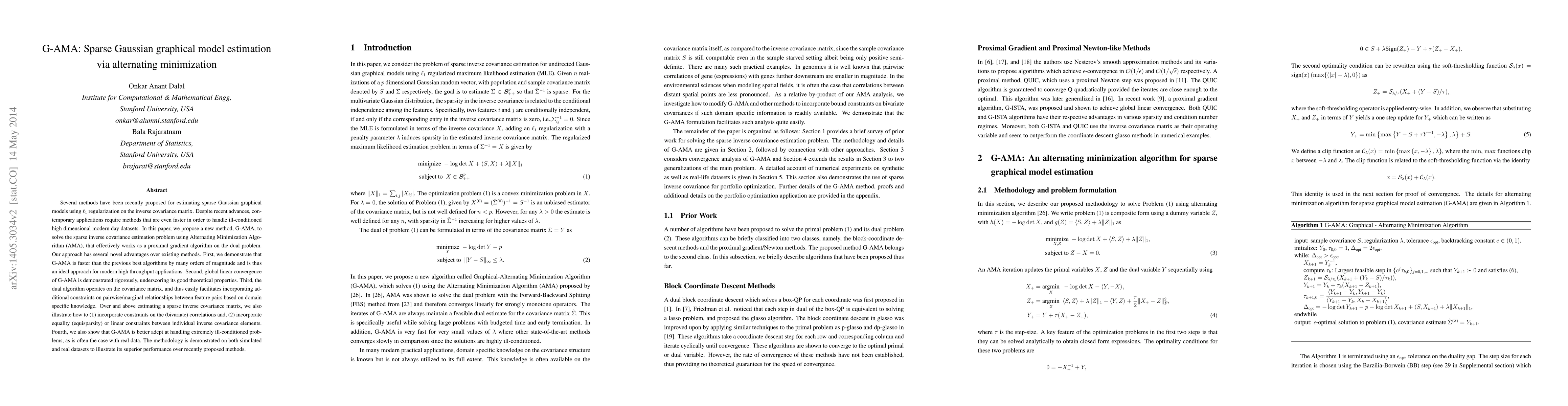Several methods have been recently proposed for estimating sparse Gaussian graphical models using $\ell_{1}$ regularization on the inverse covariance matrix. Despite recent advances, contemporary applications require methods that are even faster in order to handle ill-conditioned high dimensional modern day datasets. In this paper, we propose a new method, G-AMA, to solve the sparse inverse covariance estimation problem using Alternating Minimization Algorithm (AMA), that effectively works as a proximal gradient algorithm on the dual problem. Our approach has several novel advantages over existing methods. First, we demonstrate that G-AMA is faster than the previous best algorithms by many orders of magnitude and is thus an ideal approach for modern high throughput applications. Second, global linear convergence of G-AMA is demonstrated rigorously, underscoring its good theoretical properties. Third, the dual algorithm operates on the covariance matrix, and thus easily facilitates incorporating additional constraints on pairwise/marginal relationships between feature pairs based on domain specific knowledge. Over and above estimating a sparse inverse covariance matrix, we also illustrate how to (1) incorporate constraints on the (bivariate) correlations and, (2) incorporate equality (equisparsity) or linear constraints between individual inverse covariance elements. Fourth, we also show that G-AMA is better adept at handling extremely ill-conditioned problems, as is often the case with real data. The methodology is demonstrated on both simulated and real datasets to illustrate its superior performance over recently proposed methods.