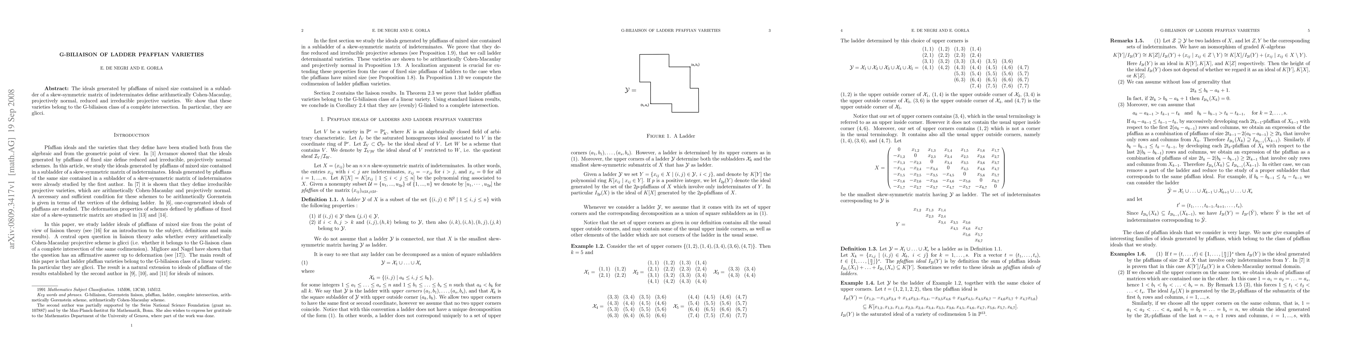 Summary: This paper investigates Pfaffian varieties defined by mixed-size pfaffians within a subladder of a skew-symmetric matrix, proving they are arithmetically Cohen-Macaulay and projectively normal. The study demonstrates these varieties belong to the G-biliaison class, specifically as glicci, of a complete intersection.